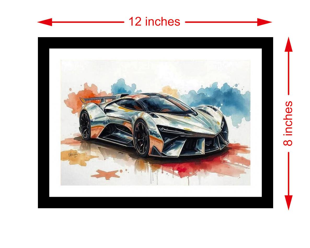 Futuristic Sports Car in Vibrant Motion, Photo Frame With Photo, Wall Hanging Art, Wall Decor, Home Decor, Picture Frame | Size: 8 x 12 inches