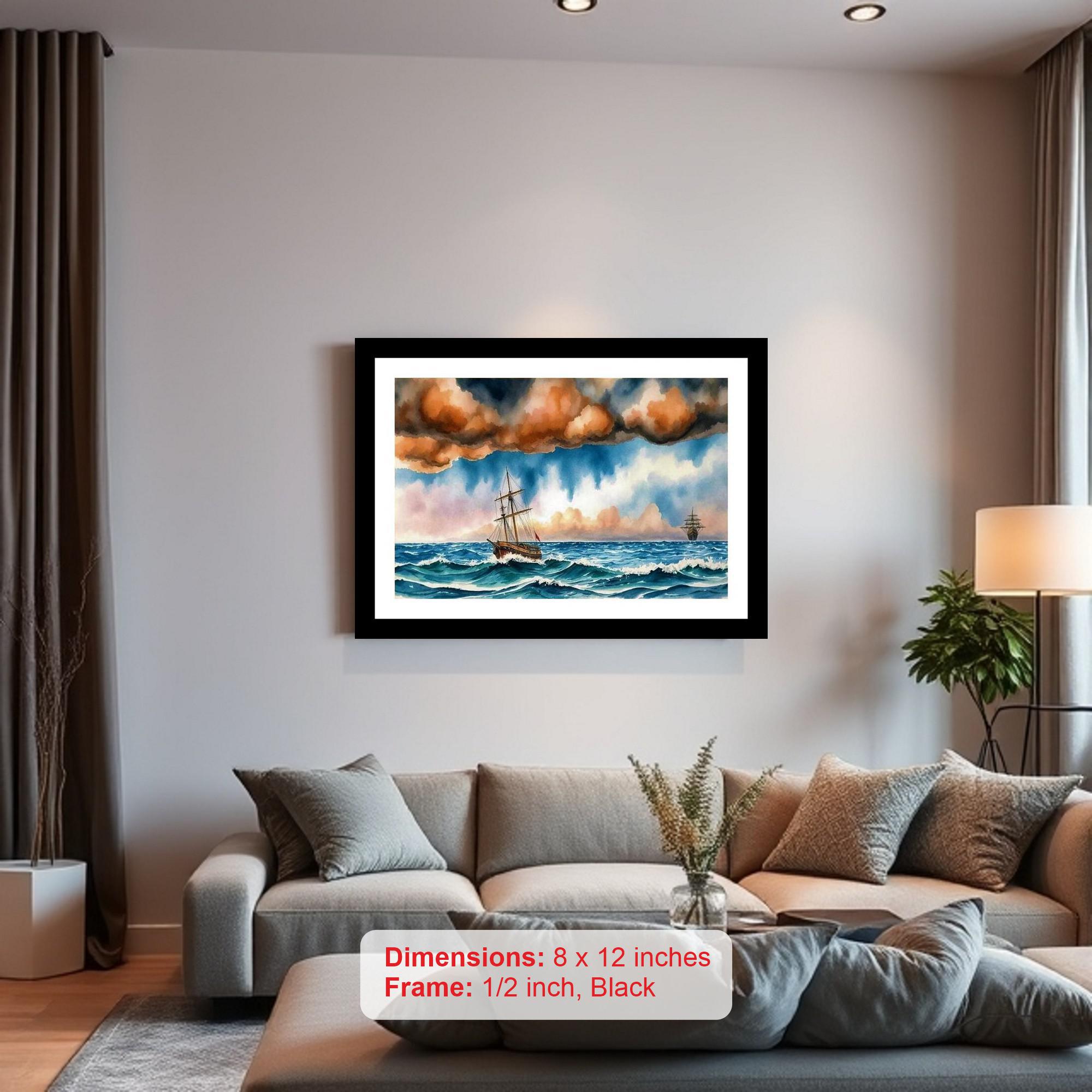 Waves of Resilience: Triumphant Sailboat Defies Storm in Masterful Portrait Vivid hues and intricate details leap from the page in this vibrant digital reprint. A testament to the enduring beauty of artistry, it captures every brushstroke and nuance with impeccable precision. Digital rejuvenation breathes new life into a timeless portrait, showcasing its captivating composition. The harmonious blending of light and shadow accentuates every delicate feature, capturing the essence of the subject with exquisite precision. A masterpiece brought to life once more. Versatile Decor: Ideal for enhancing the aesthetic appeal of living rooms and bedrooms Enhanced Durability: Weather-shield laminated digital print for lasting vibrancy and protection Premium Framing: Constructed with a high-quality, durable fiber frame for long-term stability Precise Dimensions: 30 cm x 20 cm x 1 cm