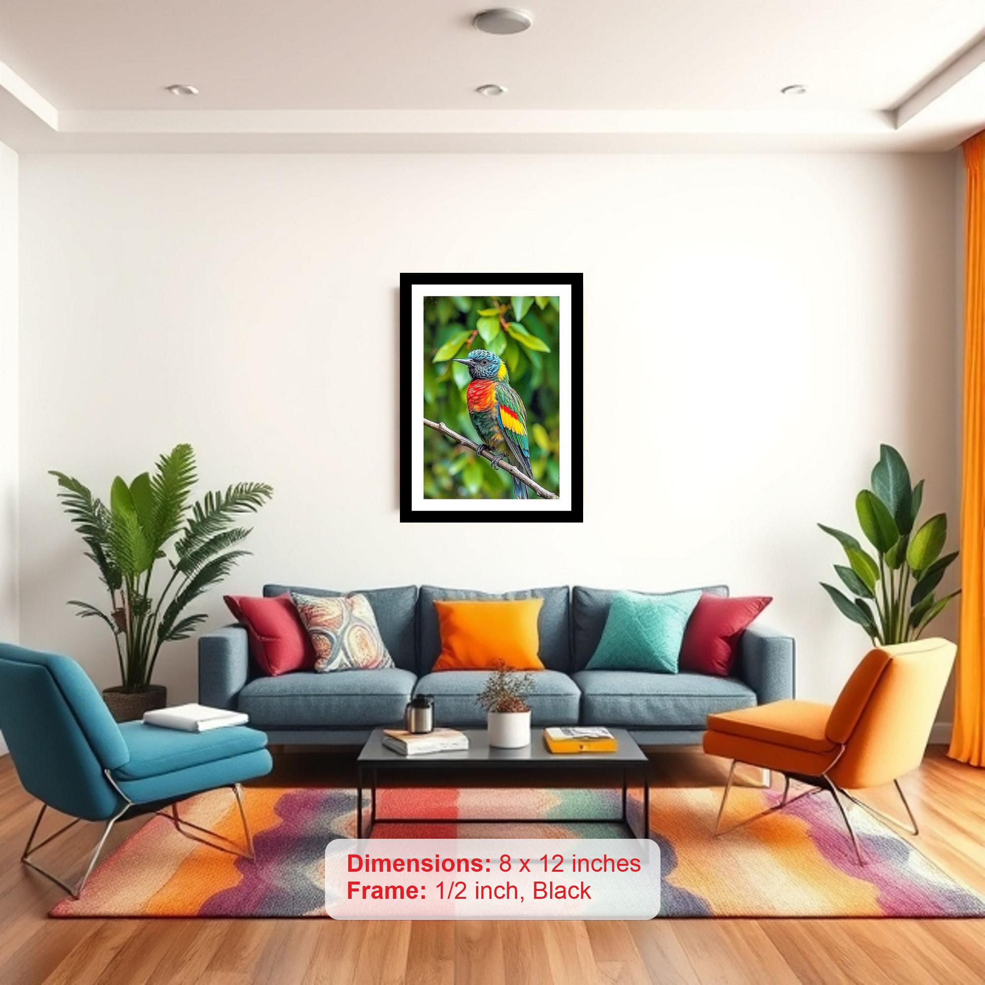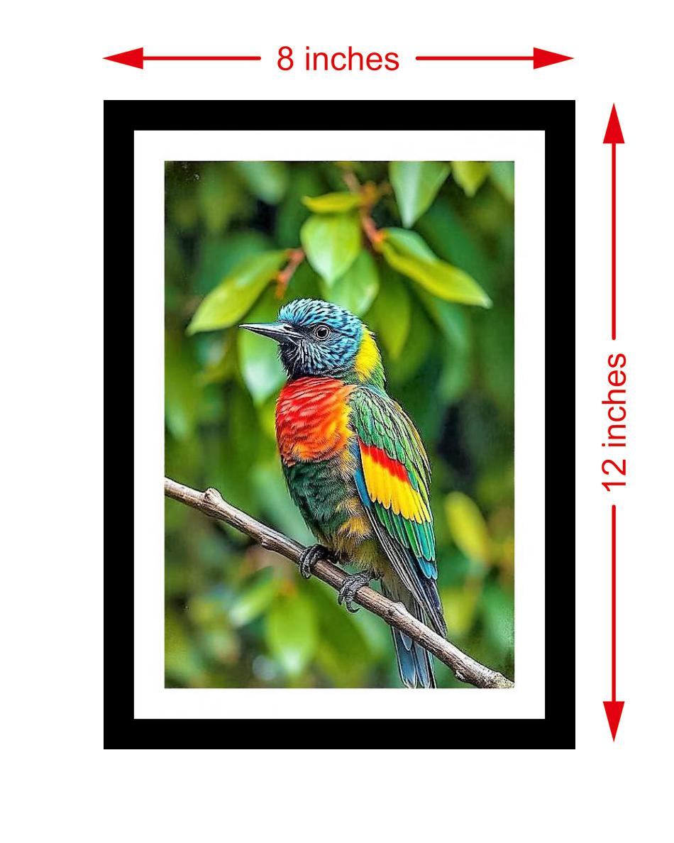 A vibrant portrait! The beautiful tropical bird in its lush jungle habitat is stunning. The colors are vibrant and the print captures every delicate detail of the original portrait. The reprint's striking composition elevates the portrait's beauty, creating a visually stunning digital masterpiece. Versatile Decor: Ideal for enhancing the aesthetic appeal of living rooms and bedrooms Enhanced Durability: Weather-shield laminated digital print for lasting vibrancy and protection Premium Framing: Constructed with a high-quality, durable fiber frame for long-term stability Precise Dimensions: 30 cm x 20 cm x 1 cm