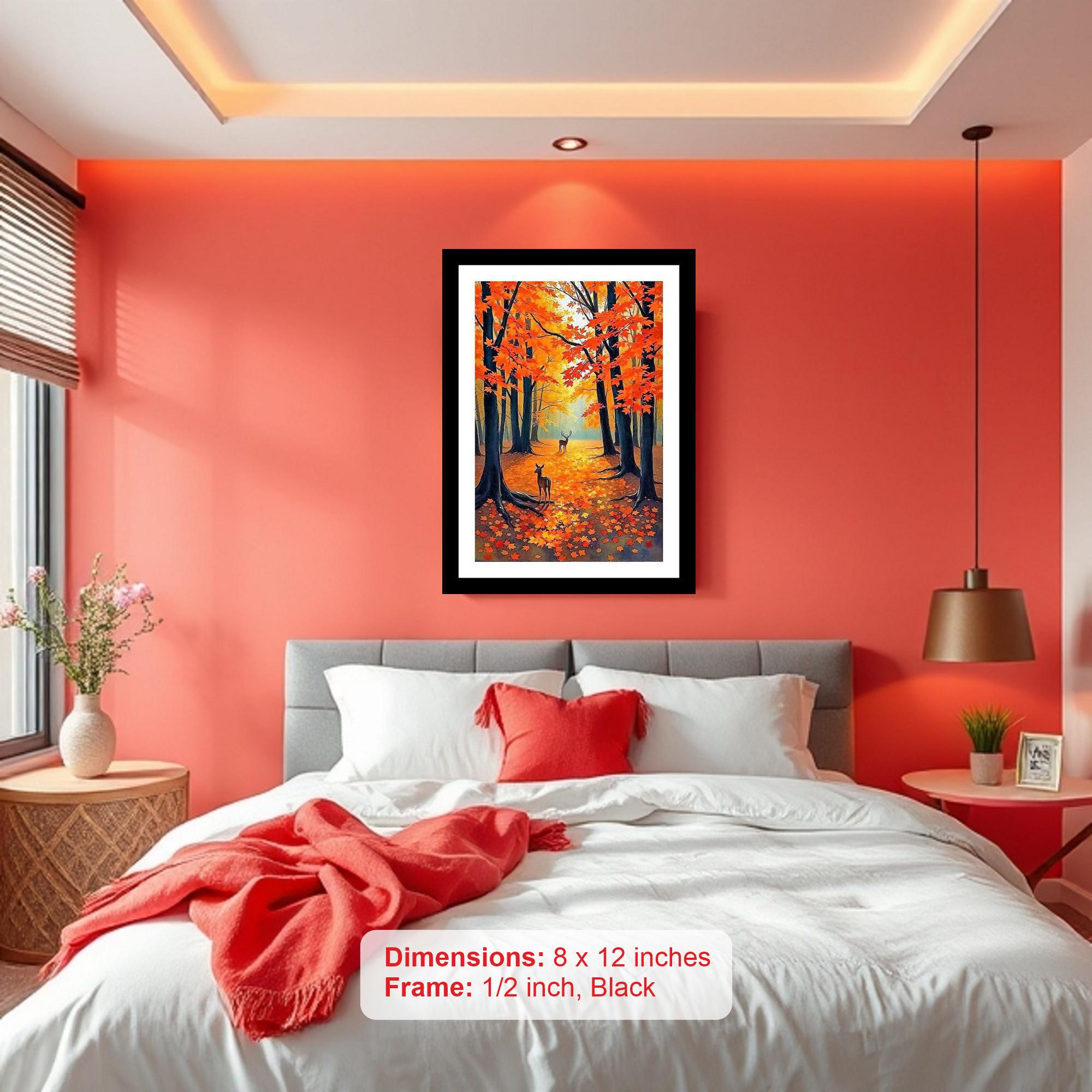 The artwork evokes a magical forest dreamscape with vibrant red leaves, utterly enchanting! The reprint's colors sing and the print is crisp, truly capturing the portrait's original beauty! The digital reprint boasts striking composition, breathing new life into the portrait's captivating beauty. Versatile Decor: Ideal for enhancing the aesthetic appeal of living rooms and bedrooms Enhanced Durability: Weather-shield laminated digital print for lasting vibrancy and protection Premium Framing: Constructed with a high-quality, durable fiber frame for long-term stability Precise Dimensions: 30 cm x 20 cm x 1 cm