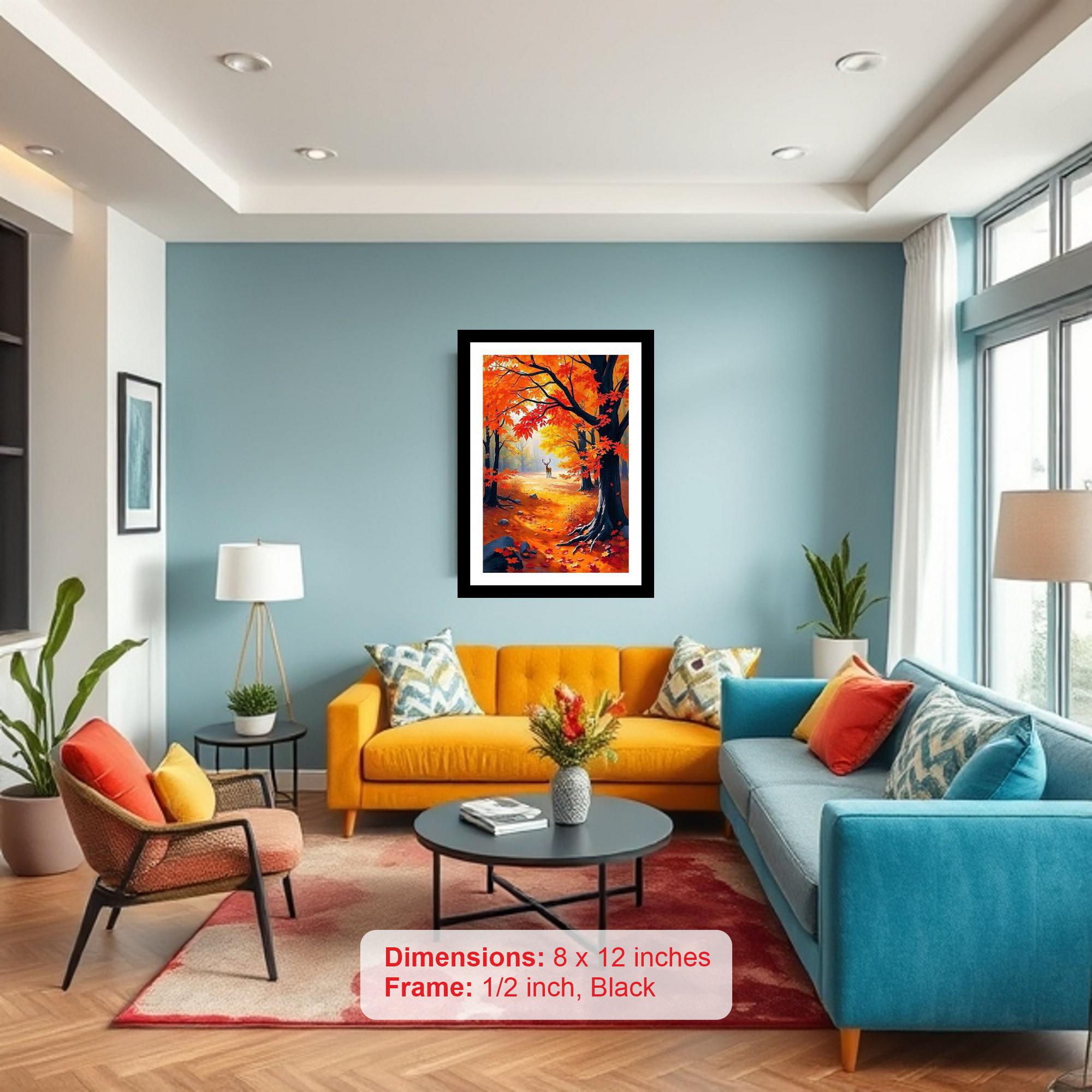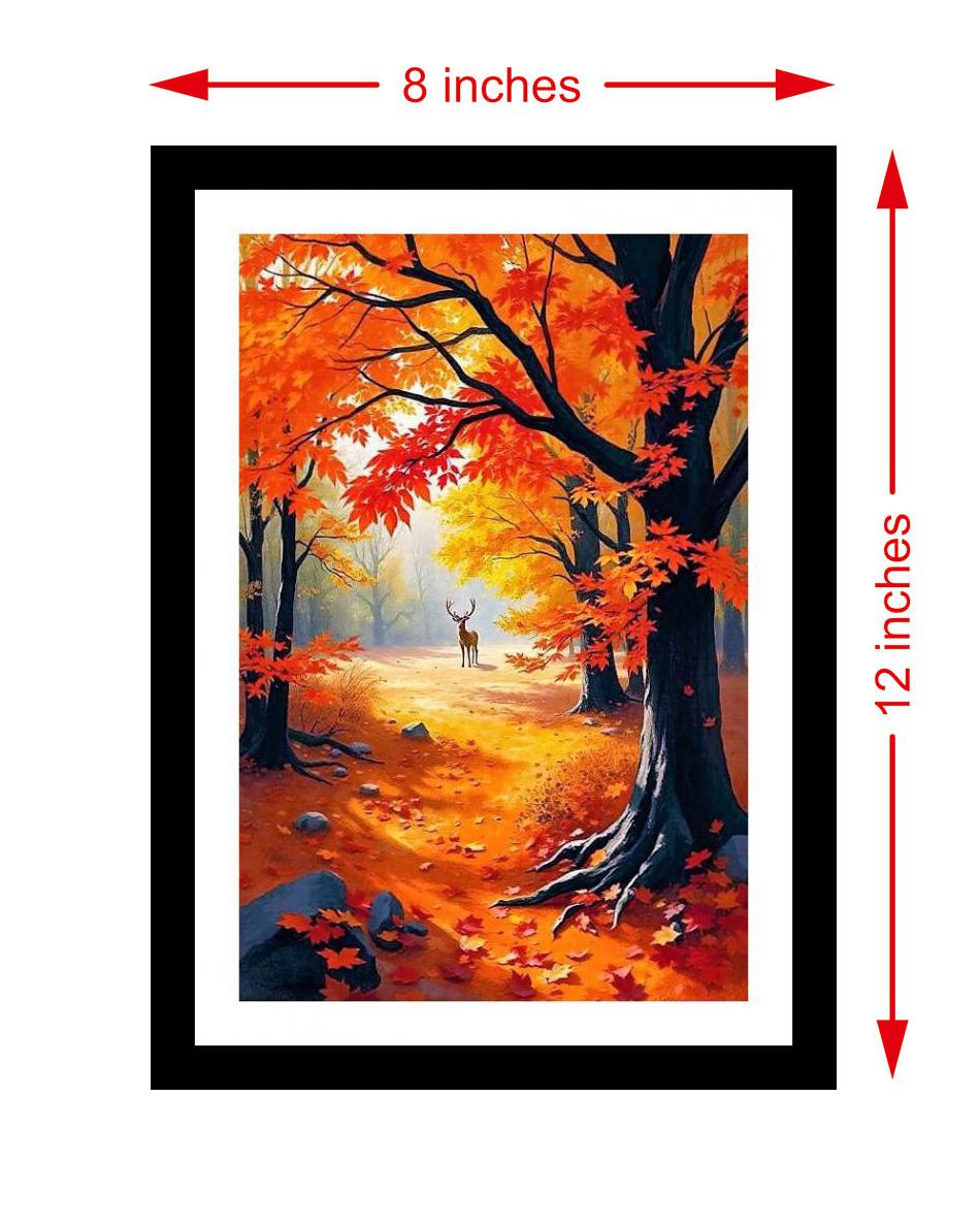 A vibrant jungle ablaze with crimson leaves, a stunning artwork that captures nature's fiery beauty! The reprint's colors pop and the print is so sharp, it feels like you could reach out and touch the subject's face! The portrait's reprint boasts a stunning composition; the artful layout amplifies its beauty and captures the eye. Versatile Decor: Ideal for enhancing the aesthetic appeal of living rooms and bedrooms Enhanced Durability: Weather-shield laminated digital print for lasting vibrancy and protection Premium Framing: Constructed with a high-quality, durable fiber frame for long-term stability Precise Dimensions: 30 cm x 20 cm x 1 cm