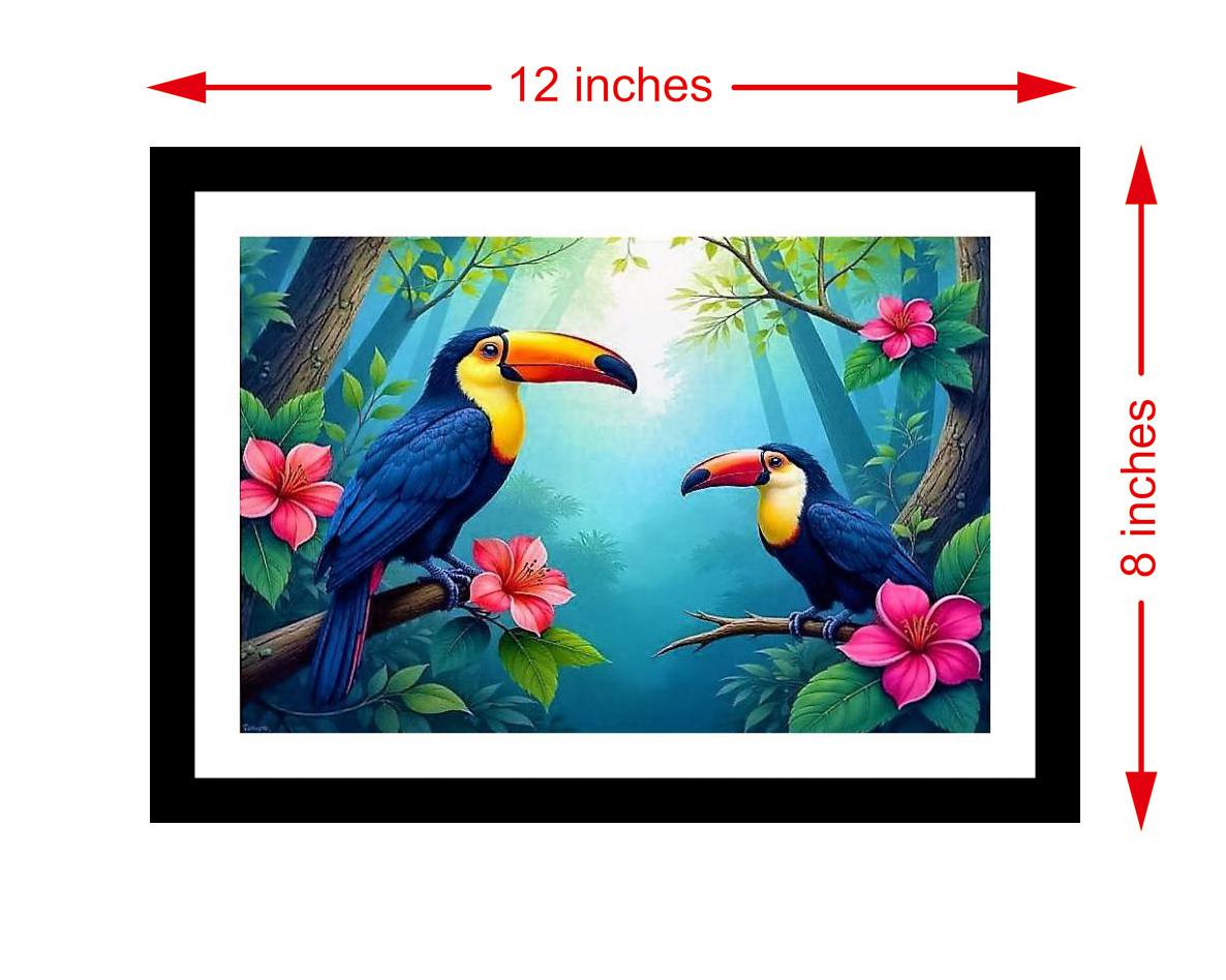 Exquisite! The toucans' vibrant beauty pops against the lush jungle backdrop. The reprint's colors burst with life, and the print captures every delicate detail of the original portrait. Stunning! The reprint's striking composition beautifully captures the portrait's essence, breathing new life into the image. Versatile Decor: Ideal for enhancing the aesthetic appeal of living rooms and bedrooms Enhanced Durability: Weather-shield laminated digital print for lasting vibrancy and protection Premium Framing: Constructed with a high-quality, durable fiber frame for long-term stability Precise Dimensions: 30 cm x 20 cm x 1 cm
