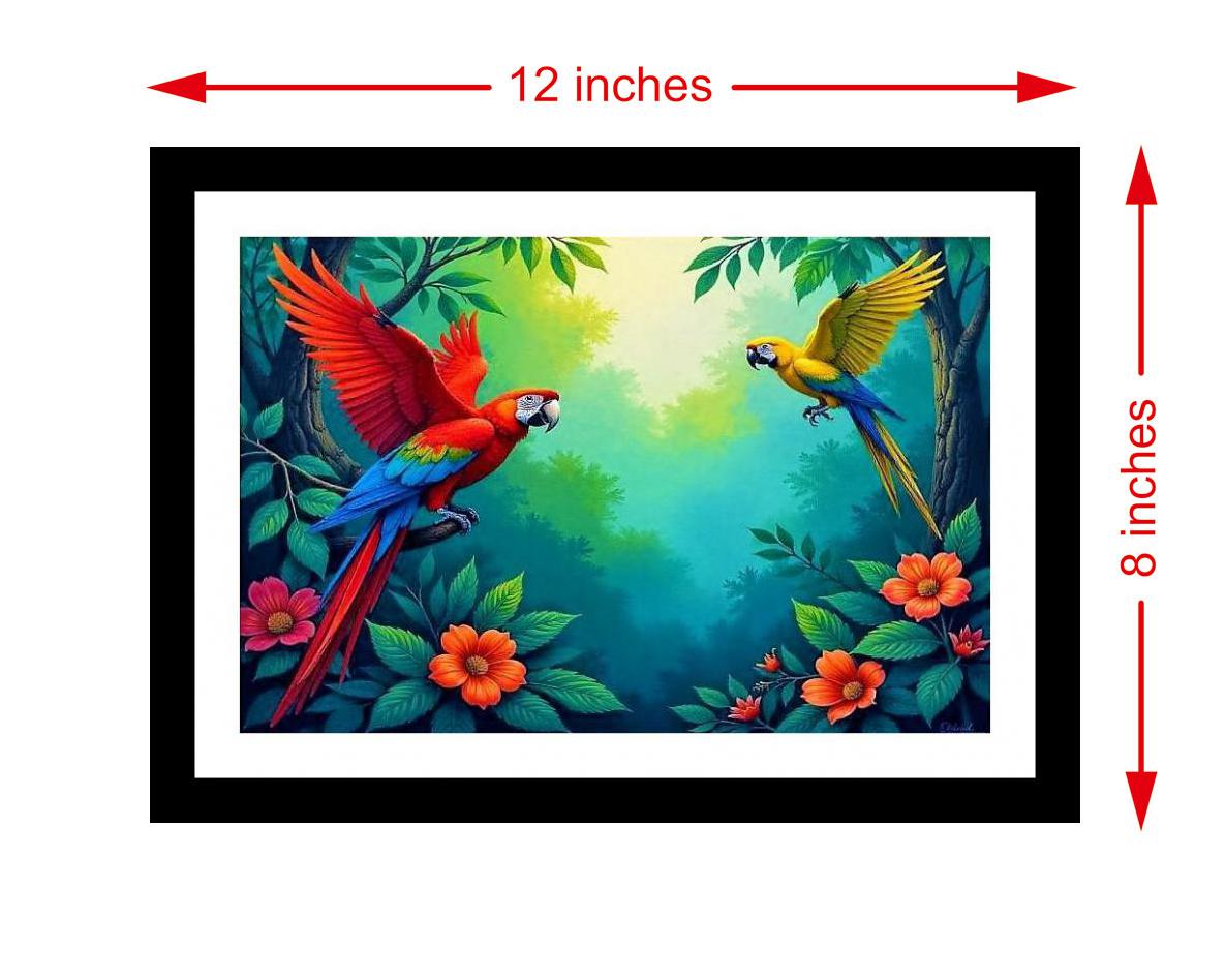 Vibrant parrots pop in this lush jungle portrait, a stunning celebration of color and tranquility. The colors are vibrant, and the print captures every exquisite detail of the original portrait. The reprint's artful composition truly captures the portrait's original beauty, resulting in a stunning digital revival. Versatile Decor: Ideal for enhancing the aesthetic appeal of living rooms and bedrooms Enhanced Durability: Weather-shield laminated digital print for lasting vibrancy and protection Premium Framing: Constructed with a high-quality, durable fiber frame for long-term stability Precise Dimensions: 30 cm x 20 cm x 1 cm
