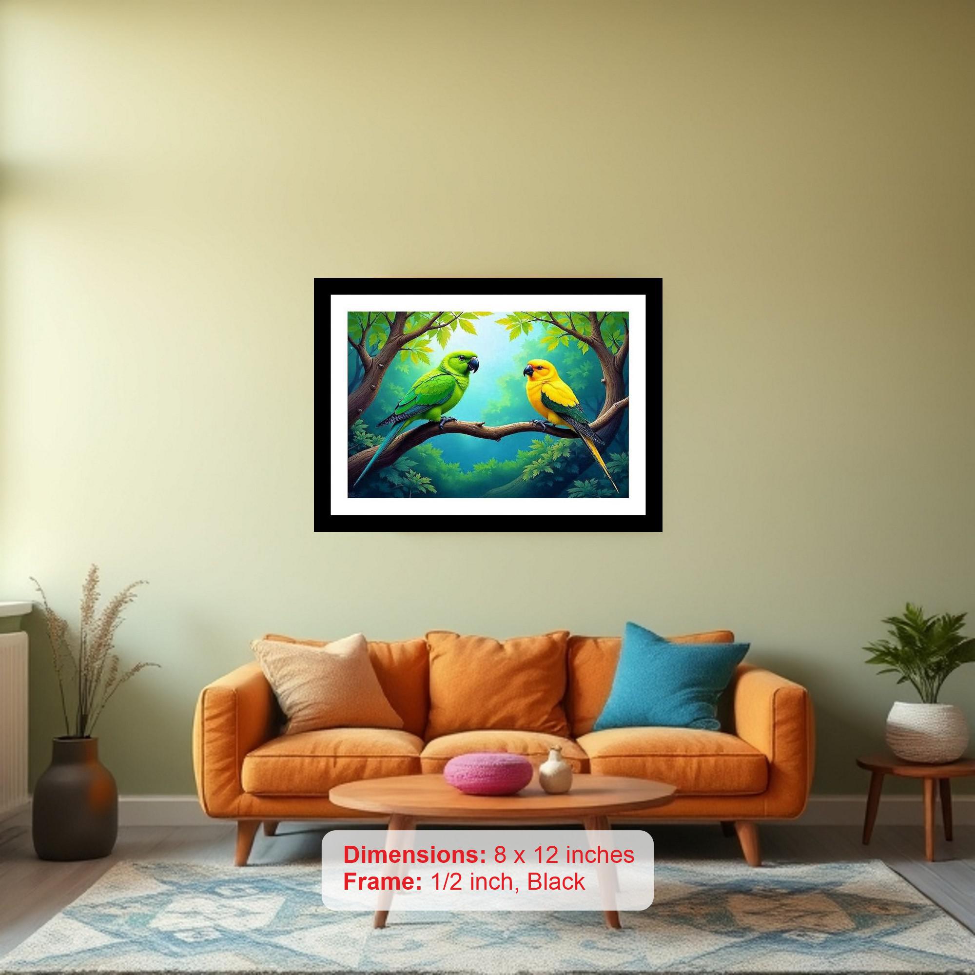 Tropical Parrot Paradise Portrait - Lush Green Forest Scene Wall Art, Interior Accents, Framing Solutions, Residential/Commercial Decor, Premium Gifts | Size: 8 x 12 inches