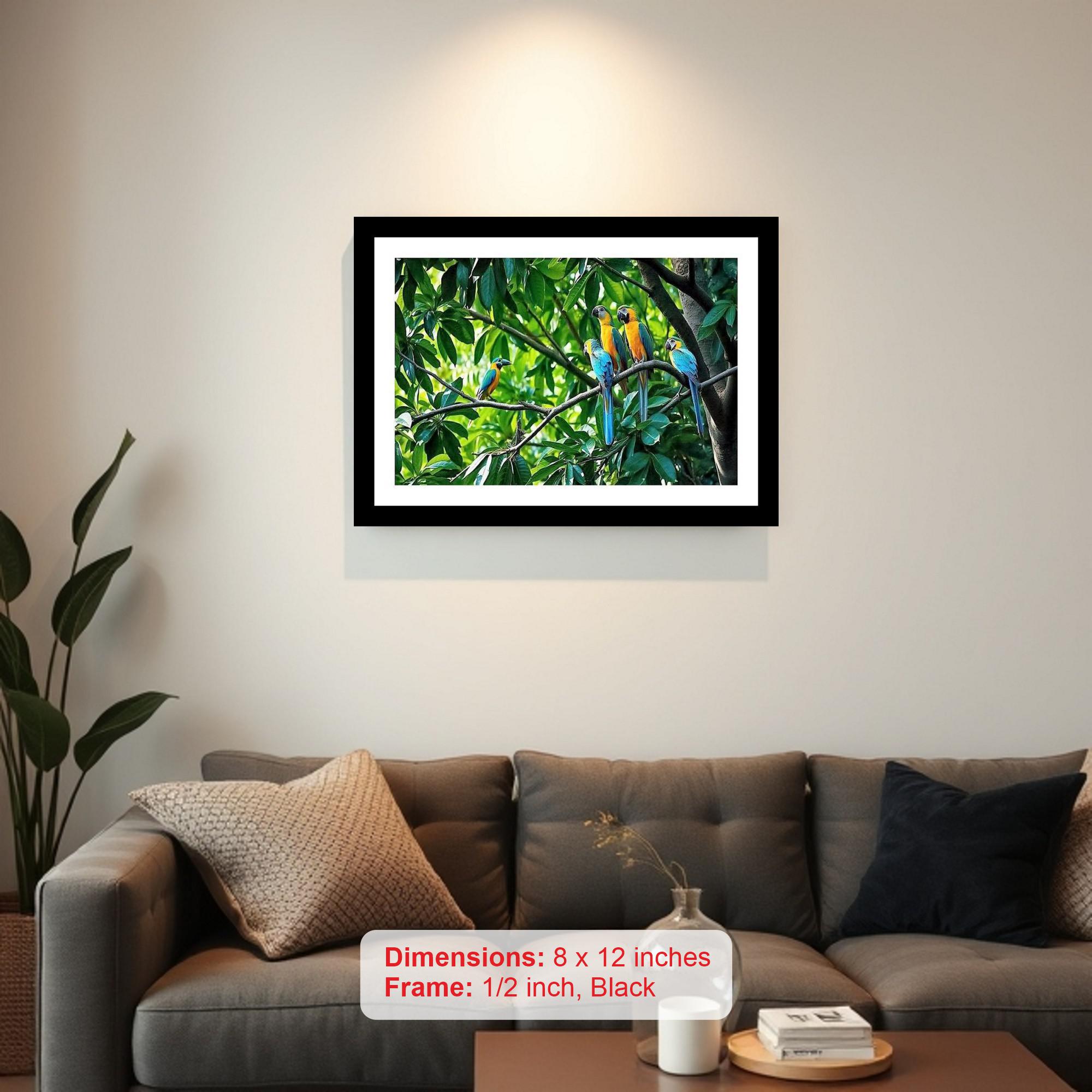 A vibrant, lush tropical paradise bursts with life, showcasing stunning parrots amidst emerald foliage. The colors are vibrant, the print is sharp, and the portrait's beauty shines anew in this excellent digital reprint. The digital reprint boasts striking composition, faithfully capturing the portrait's original beauty in stunning clarity. Versatile Decor: Ideal for enhancing the aesthetic appeal of living rooms and bedrooms Enhanced Durability: Weather-shield laminated digital print for lasting vibrancy and protection Premium Framing: Constructed with a high-quality, durable fiber frame for long-term stability Precise Dimensions: 30 cm x 20 cm x 1 cm