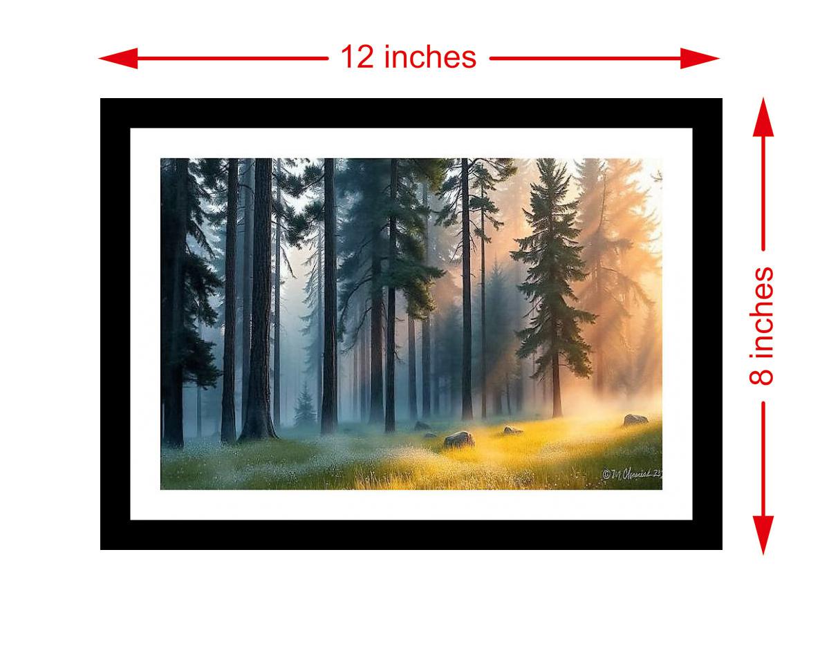 A breathtakingly beautiful artwork capturing the serene, foggy mountain forest bathed in lush green morning light. The colors pop, and the print is so sharp, every detail of the portrait shines. The reprint's artful composition beautifully captures the portrait's essence, breathing new life into a timeless masterpiece. Versatile Decor: Ideal for enhancing the aesthetic appeal of living rooms and bedrooms Enhanced Durability: Weather-shield laminated digital print for lasting vibrancy and protection Premium Framing: Constructed with a high-quality, durable fiber frame for long-term stability Precise Dimensions: 30 cm x 20 cm x 1 cm
