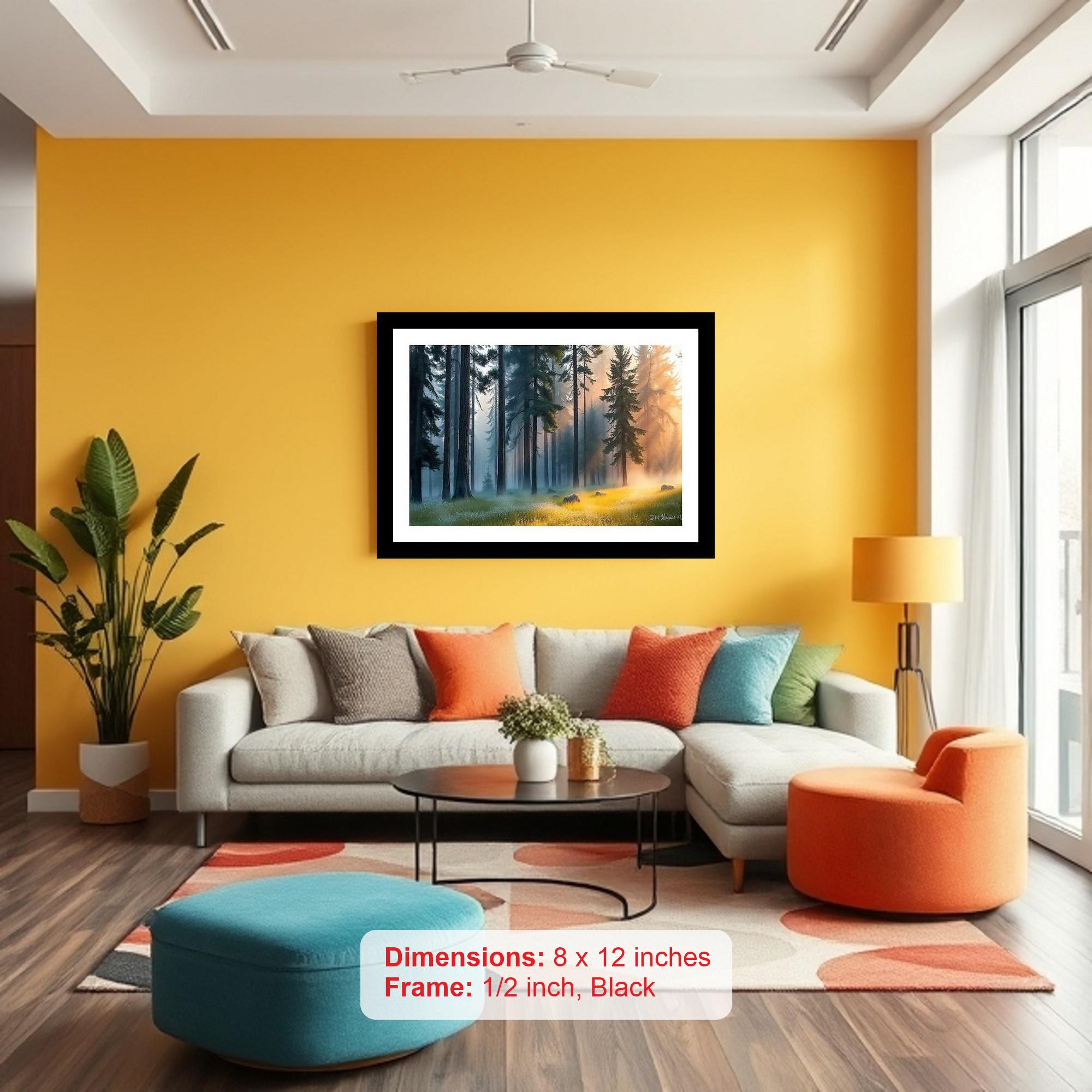 Immerse yourself in the tranquility of nature with our classic black Framed Digital Reprint, capturing a serene morning scene of a foggy mountain forest. This elegant artwork transports you to a world of lush greenery, where towering trees rise majestically from the mist-shrouded landscape. The soft, ethereal fog dances among the branches, creating a sense of mystery and wonder. The vibrant green foliage adds a touch of life and vitality to the scene, creating a harmonious balance between the serene fog and the lush vegetation. The classic black frame adds a touch of sophistication and timeless elegance to the artwork, making it a perfect addition to any home or office decor. The high-quality digital reprint ensures that every detail of the original portrait is faithfully reproduced, from the delicate brushstrokes to the subtle color variations. This stunning piece of art will bring a sense of peace and tranquility to any room, creating a relaxing and inviting atmosphere. Hang it in your living room, bedroom, or office to enjoy the beauty of nature every day. Whether you're a nature lover, an art enthusiast, or simply looking for a way to add a touch of elegance to your space, this classic black Framed Digital Reprint is the perfect choice. Its timeless design and serene subject matter will make it a cherished piece for years to come.