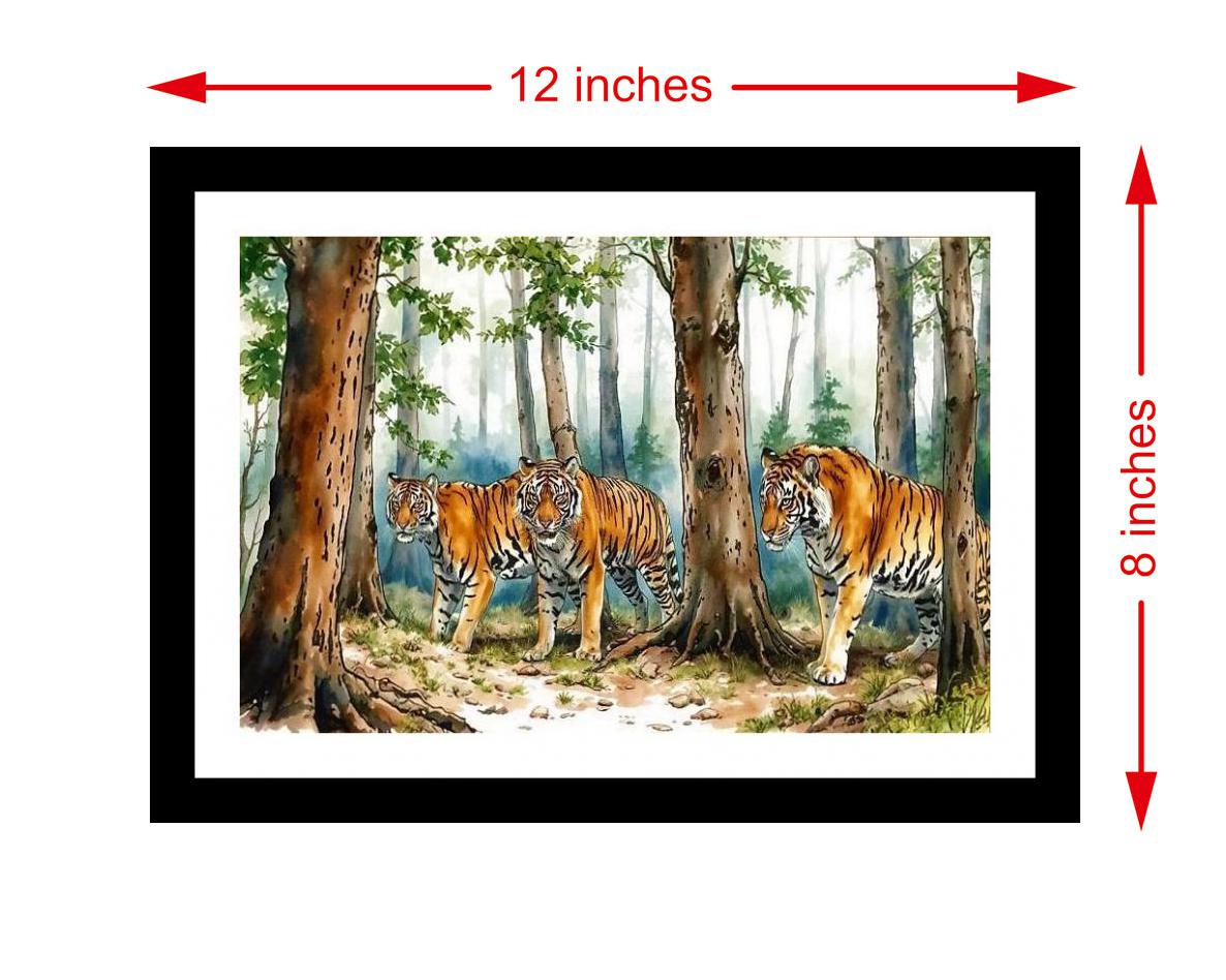 Majestic! Three tigers stand proud amidst the lush jungle, a powerful & captivating portrait. Colors pop, details crisp - the portrait's beauty is brilliantly reborn. The digital reprint boasts a striking composition, expertly capturing the portrait's original beauty and depth. Versatile Decor: Ideal for enhancing the aesthetic appeal of living rooms and bedrooms Enhanced Durability: Weather-shield laminated digital print for lasting vibrancy and protection Premium Framing: Constructed with a high-quality, durable fiber frame for long-term stability Precise Dimensions: 30 cm x 20 cm x 1 cm
