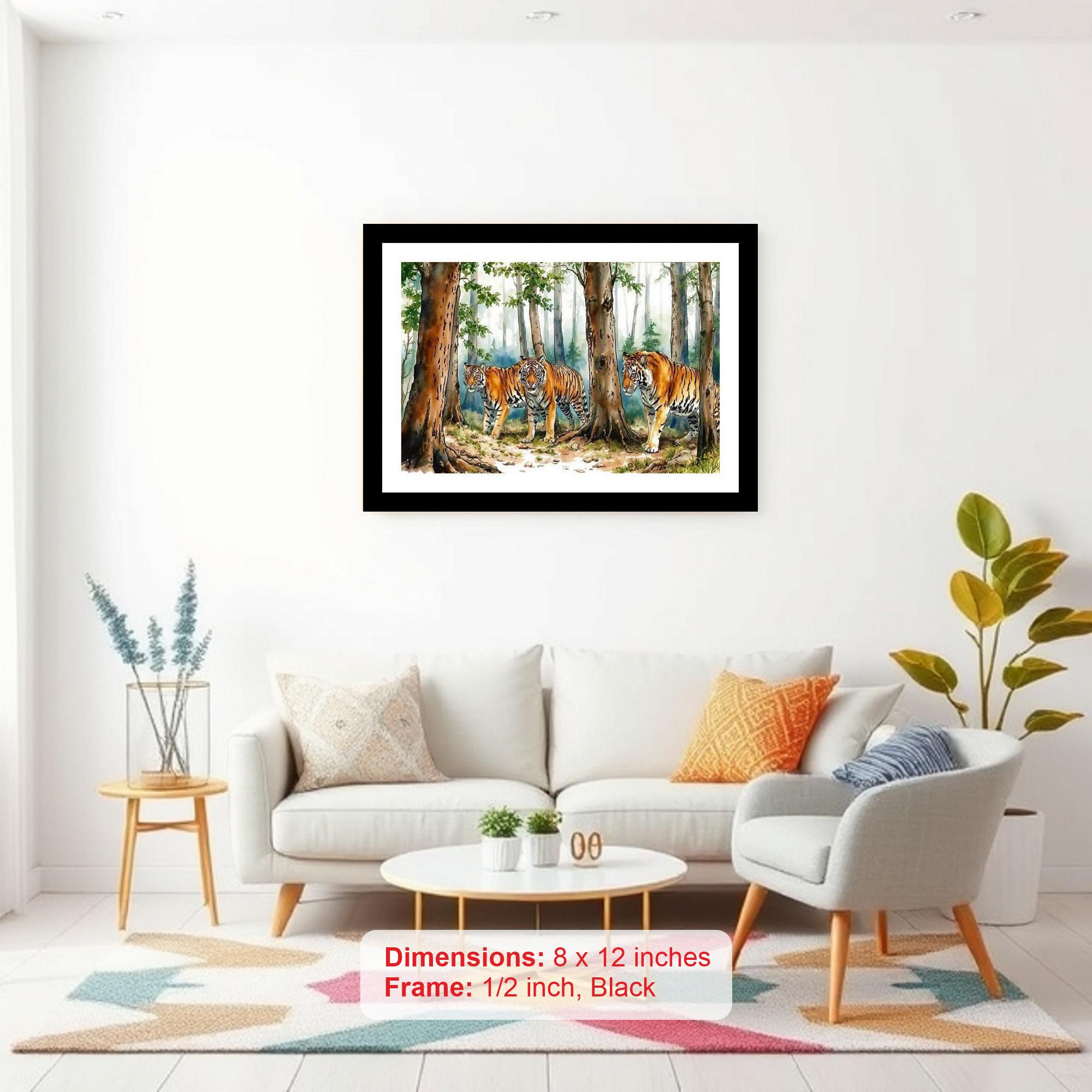 Majestic Tigers Portrait: Tropical Forest Scene. Photo Frame With Photo, Wall Hanging Art, Wall Decor, Home Decor, Picture Frame | Size: 8 x 12 inches