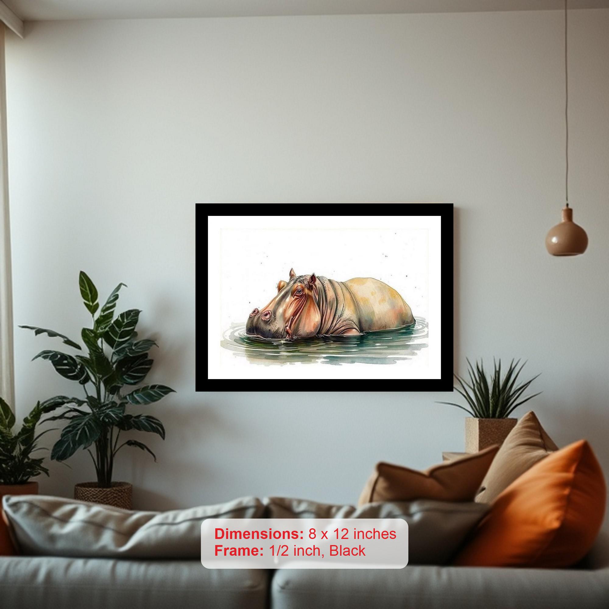 Majestic mammoth hippo in cool waters: a whimsical, wonderful, and weighty work of art! The reprint's colors are vibrant and true, the print captures every detail of the portrait beautifully. The digital reprint's striking composition breathes new life into the portrait's beauty. Masterfully done! Versatile Decor: Ideal for enhancing the aesthetic appeal of living rooms and bedrooms Enhanced Durability: Weather-shield laminated digital print for lasting vibrancy and protection Premium Framing: Constructed with a high-quality, durable fiber frame for long-term stability Precise Dimensions: 30 cm x 20 cm x 1 cm
