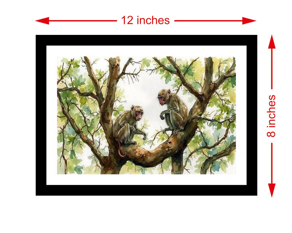 A charming portrait of simian companionship amidst a vibrant jungle, beautifully capturing nature's harmony. The colors are vibrant and the print captures every detail of the original portrait perfectly. The digital reprint boasts a striking composition, flawlessly capturing the portrait's beauty and depth. Versatile Decor: Ideal for enhancing the aesthetic appeal of living rooms and bedrooms Enhanced Durability: Weather-shield laminated digital print for lasting vibrancy and protection Premium Framing: Constructed with a high-quality, durable fiber frame for long-term stability Precise Dimensions: 30 cm x 20 cm x 1 cm