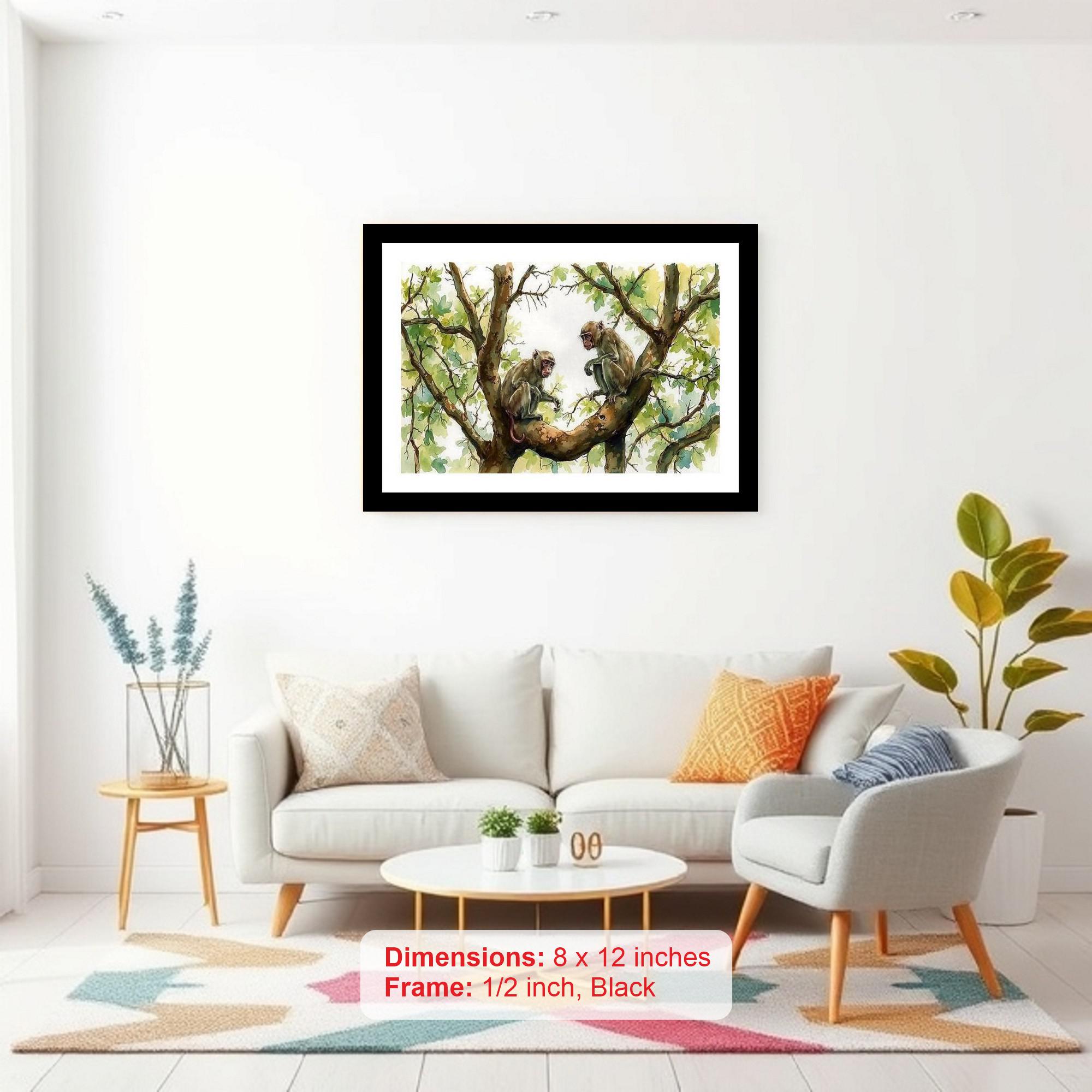 Jungle Duo: Monkey Portrait in Lush Forest Scene Wall Art, Interior Accents, Framing Solutions, Residential/Commercial Decor, Premium Gifts | Size: 8 x 12 inches