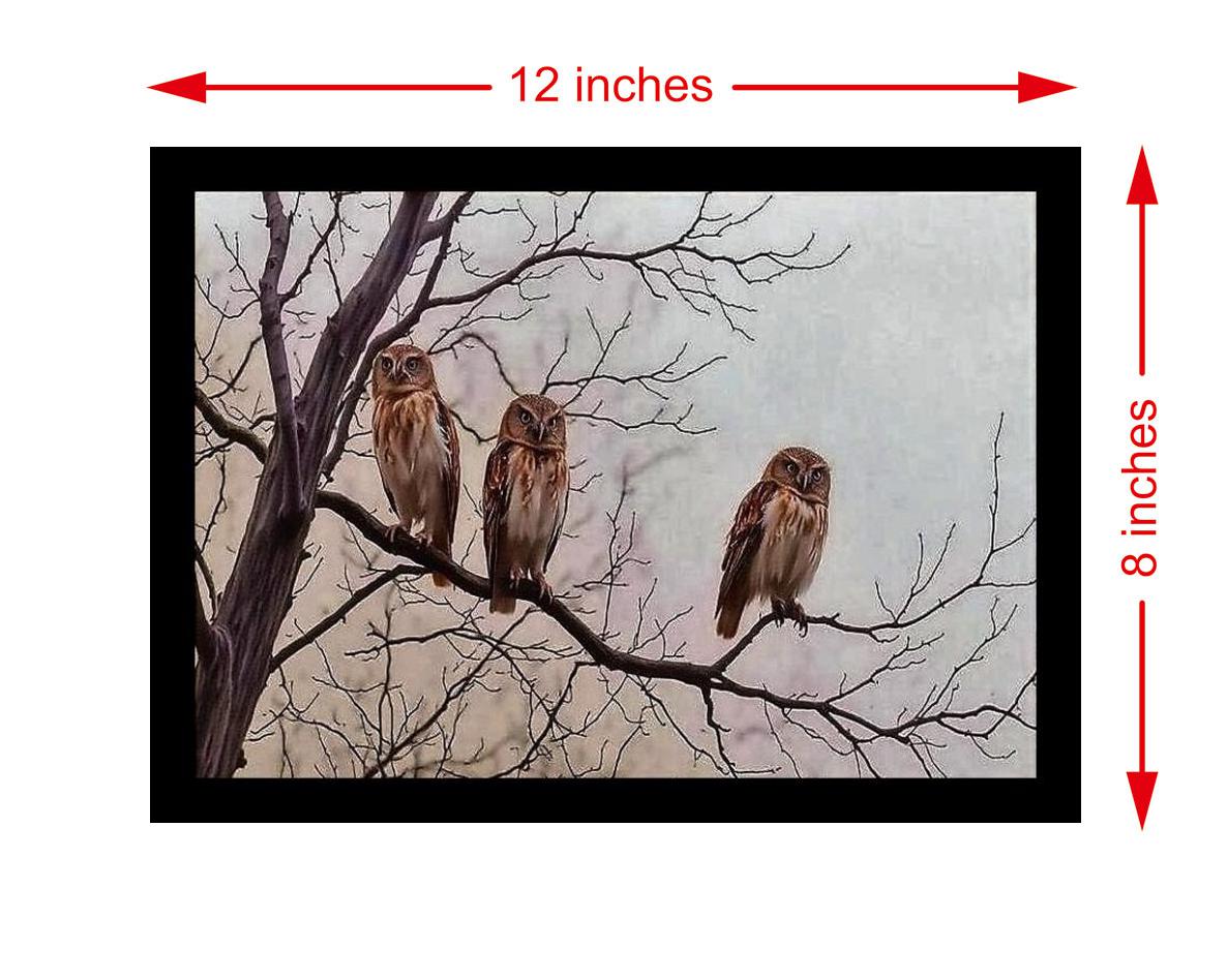 A stunning owl trio portrait captures autumn's melancholy beauty with grace and feathered detail. The colors pop and the detail is stunning; this reprint truly captures the beauty of the original portrait! The reprint's striking composition brilliantly captures the portrait's original beauty in a modern, digital form. Versatile Decor: Ideal for enhancing the aesthetic appeal of living rooms and bedrooms Enhanced Durability: Weather-shield laminated digital print for lasting vibrancy and protection Premium Framing: Constructed with a high-quality, durable fiber frame for long-term stability Precise Dimensions: 30 cm x 20 cm x 1 cm