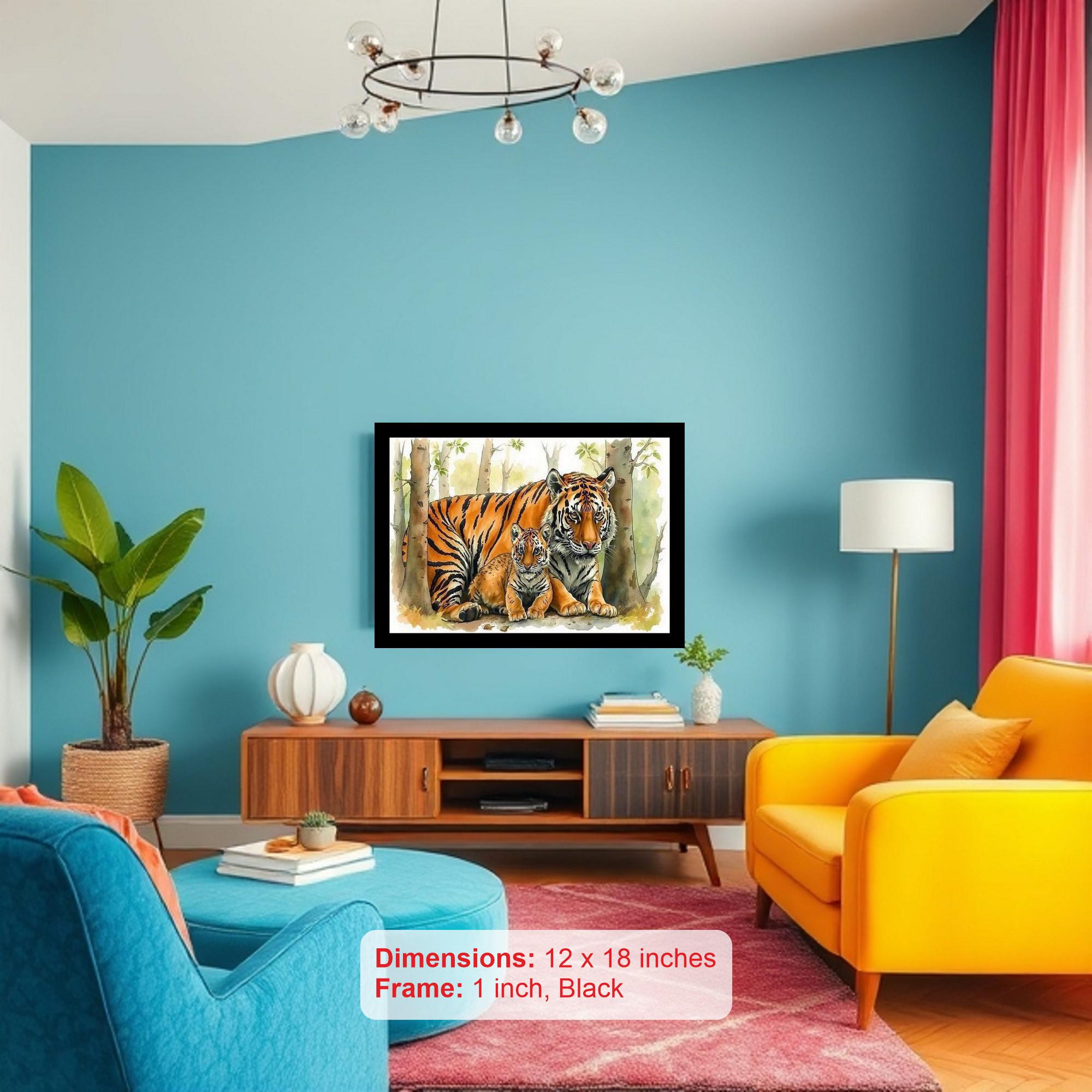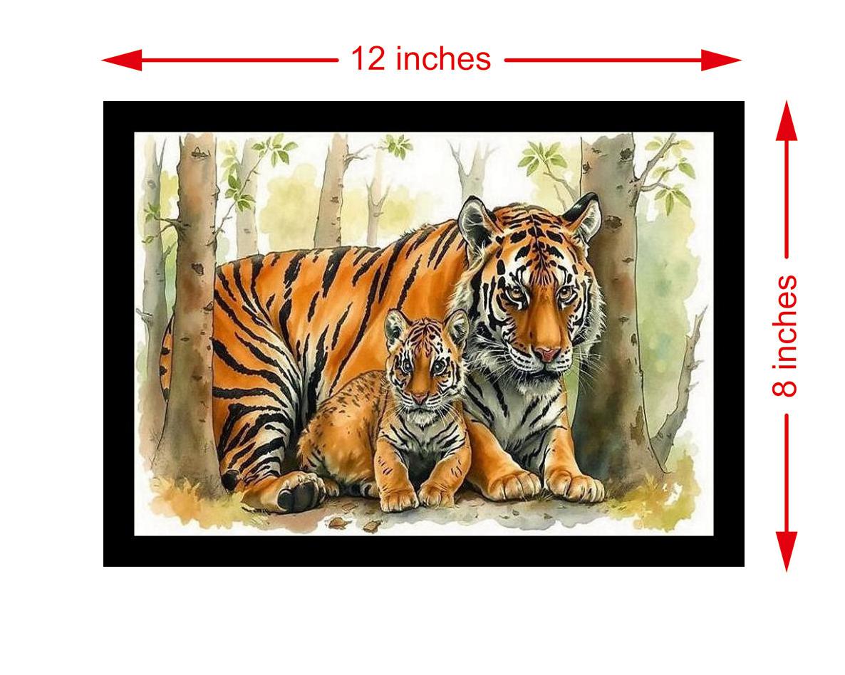 A stunning portrait captures a tigress's fierce love amidst a lush jungle, a masterpiece of wild motherhood. Colors are vibrant and true, capturing every detail of the original portrait beautifully. The reprint's composition is stunning! The artist's vision shines through with perfect balance and captivating detail. Versatile Decor: Ideal for enhancing the aesthetic appeal of living rooms and bedrooms Enhanced Durability: Weather-shield laminated digital print for lasting vibrancy and protection Premium Framing: Constructed with a high-quality, durable fiber frame for long-term stability Precise Dimensions: 30 cm x 20 cm x 1 cm