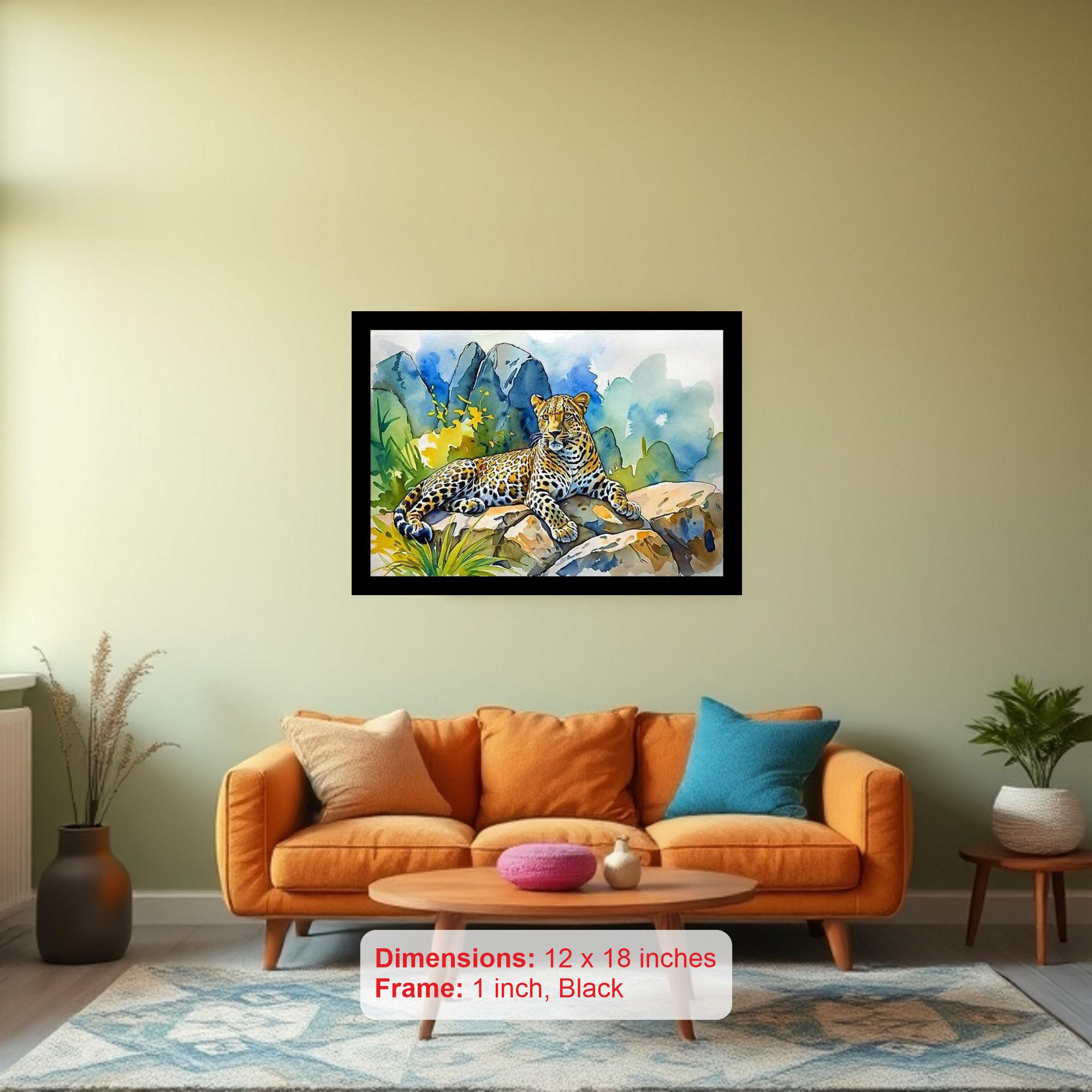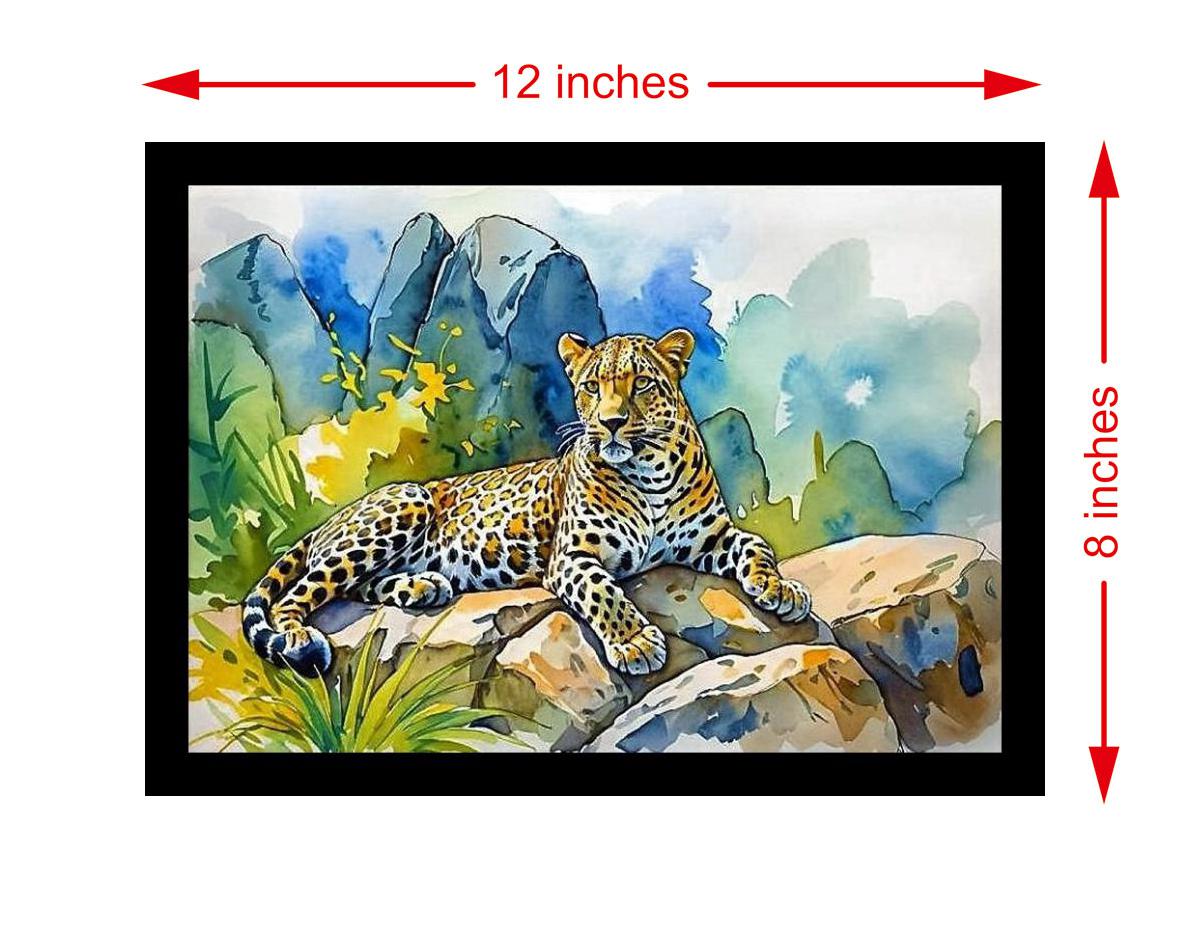 A stunning portrayal of a leopard's regal presence amidst a vibrant, sun-kissed landscape. Colors are vibrant and true, print quality is crisp - the portrait's beauty shines through! The reprint's composition is stunning! The subject's presence and the image's balance truly captivate. Versatile Decor: Ideal for enhancing the aesthetic appeal of living rooms and bedrooms Enhanced Durability: Weather-shield laminated digital print for lasting vibrancy and protection Premium Framing: Constructed with a high-quality, durable fiber frame for long-term stability Precise Dimensions: 30 cm x 20 cm x 1 cm