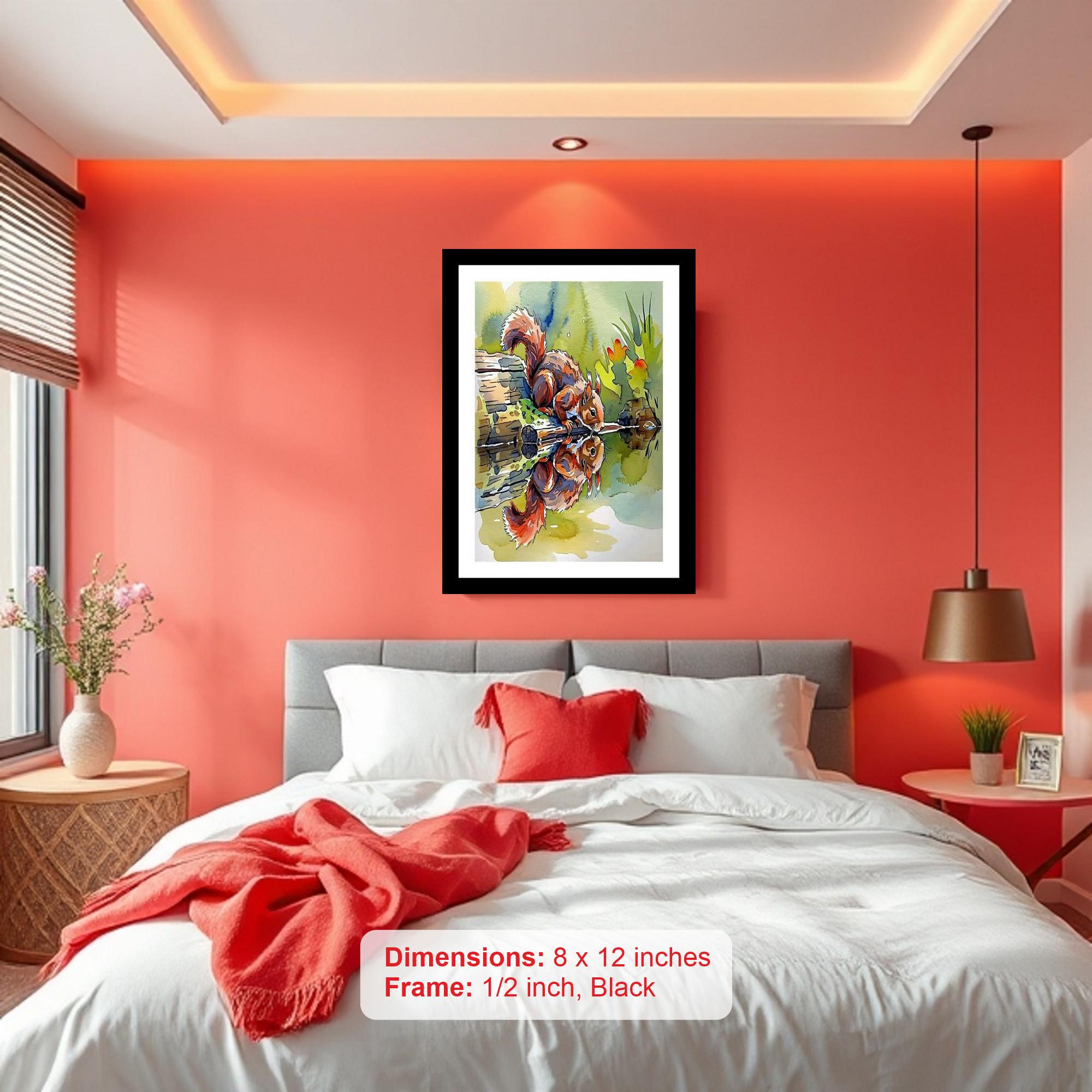 Charming artwork! The playful squirrel's pond reflection creates a delightful, serene forest moment. Stunning reprint! Colors are vibrant, and the print captures every exquisite detail of the original portrait. The reprint's striking composition breathes new life into the portrait, capturing its original beauty perfectly. Versatile Decor: Ideal for enhancing the aesthetic appeal of living rooms and bedrooms Enhanced Durability: Weather-shield laminated digital print for lasting vibrancy and protection Premium Framing: Constructed with a high-quality, durable fiber frame for long-term stability Precise Dimensions: 30 cm x 20 cm x 1 cm