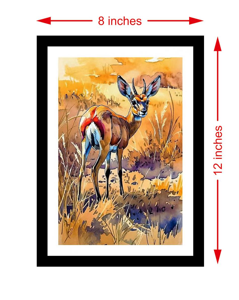 Sun-drenched savanna meets graceful springbok in a stunning, evocative artwork. Colors are vibrant, print is crisp, and the portrait's beauty shines through. A true treasure. The digital reprint boasts a striking composition, flawlessly capturing the portrait's beauty. Versatile Decor: Ideal for enhancing the aesthetic appeal of living rooms and bedrooms Enhanced Durability: Weather-shield laminated digital print for lasting vibrancy and protection Premium Framing: Constructed with a high-quality, durable fiber frame for long-term stability Precise Dimensions: 30 cm x 20 cm x 1 cm