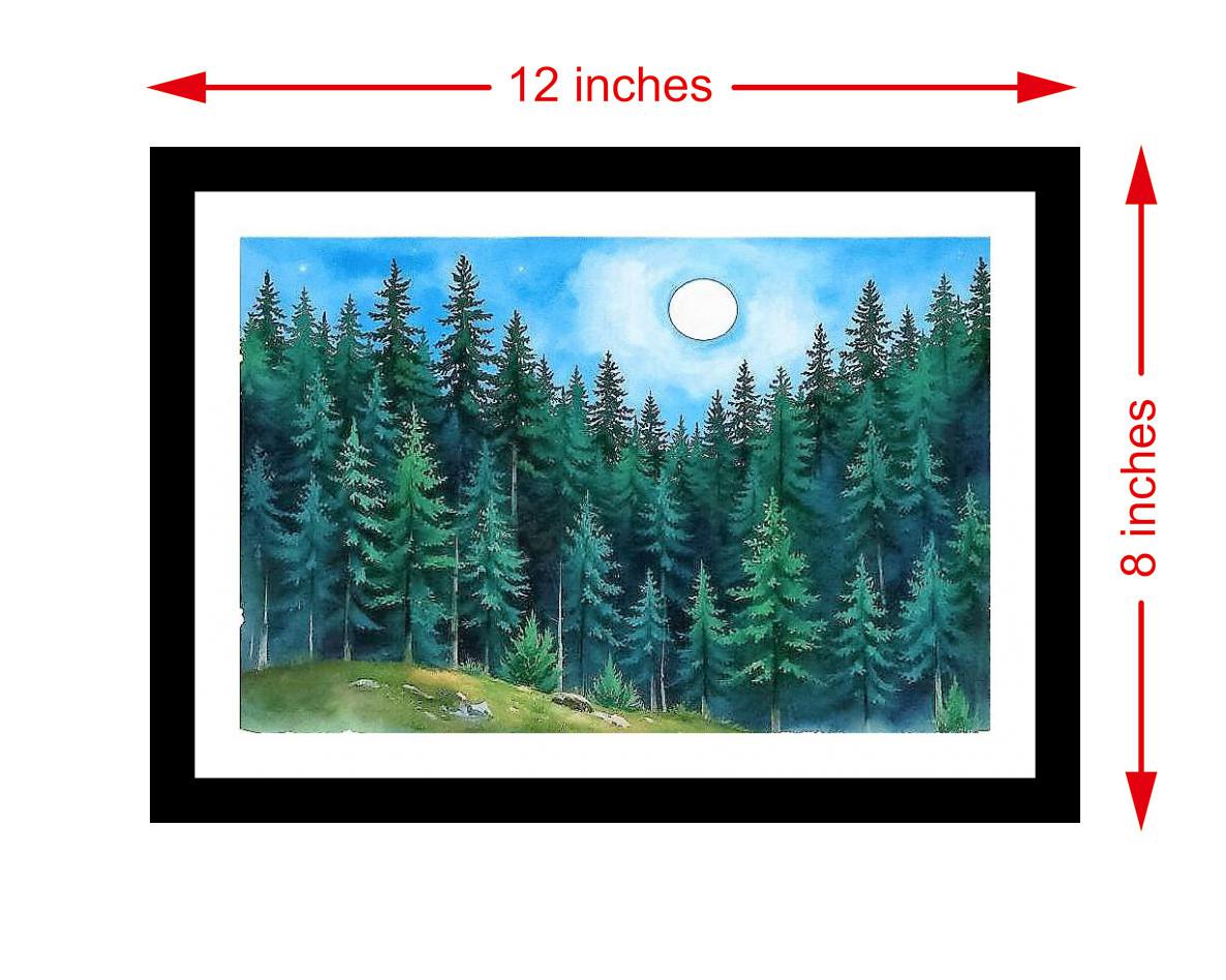 Serene moonlight kisses a tranquil evergreen forest, a masterpiece of peaceful, luminous beauty. The colors pop and the print captures every detail of the original portrait beautifully. The reprint's composition is stunning; masterful use of space and light truly honors the original portrait. Versatile Decor: Ideal for enhancing the aesthetic appeal of living rooms and bedrooms Enhanced Durability: Weather-shield laminated digital print for lasting vibrancy and protection Premium Framing: Constructed with a high-quality, durable fiber frame for long-term stability Precise Dimensions: 30 cm x 20 cm x 1 cm
