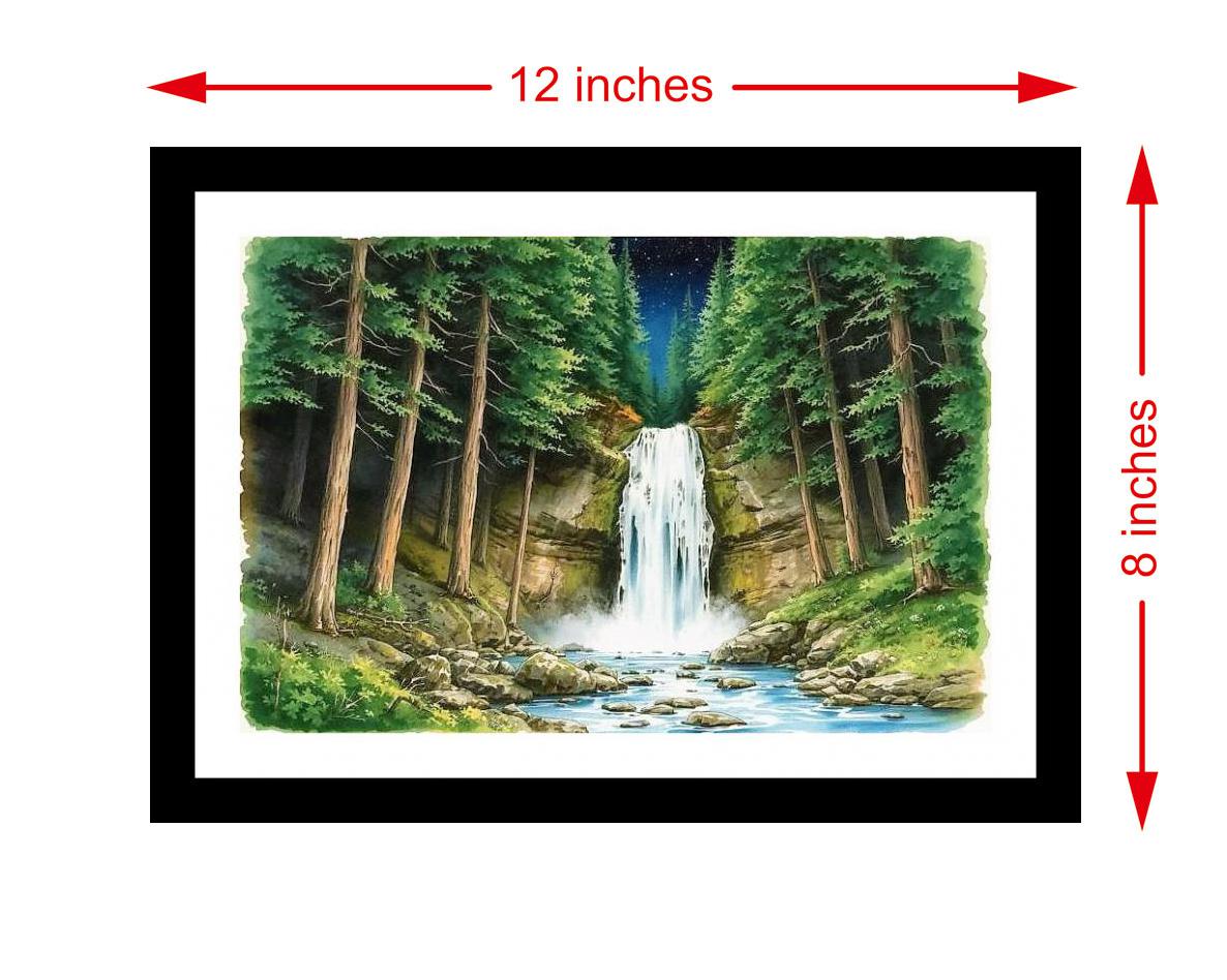 A breathtakingly serene artwork: starlit waterfall gracefully embracing a tranquil forest. The colors burst, the details sing - a stunning digital reprint that truly honors the original portrait's beauty! The digital reprint boasts a striking composition, truly capturing the portrait's original beauty and artistic intent. Versatile Decor: Ideal for enhancing the aesthetic appeal of living rooms and bedrooms Enhanced Durability: Weather-shield laminated digital print for lasting vibrancy and protection Premium Framing: Constructed with a high-quality, durable fiber frame for long-term stability Precise Dimensions: 30 cm x 20 cm x 1 cm