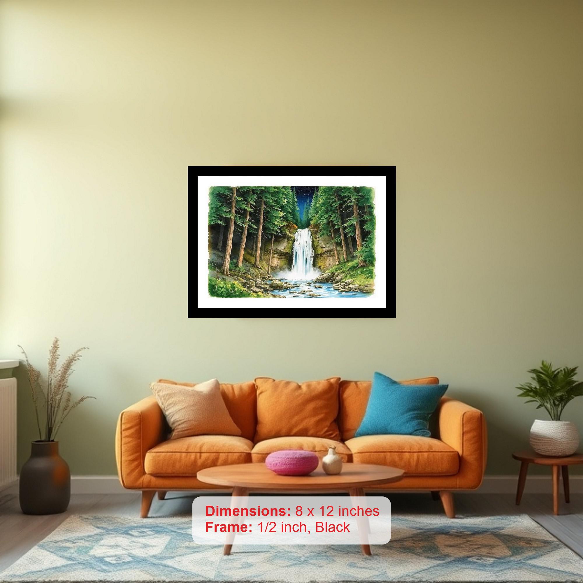 Starlit Waterfall Portrait: Serene Forest Cascade. Wall Art, Interior Accents, Framing Solutions, Residential/Commercial Decor, Premium Gifts | Size: 8 x 12 inches