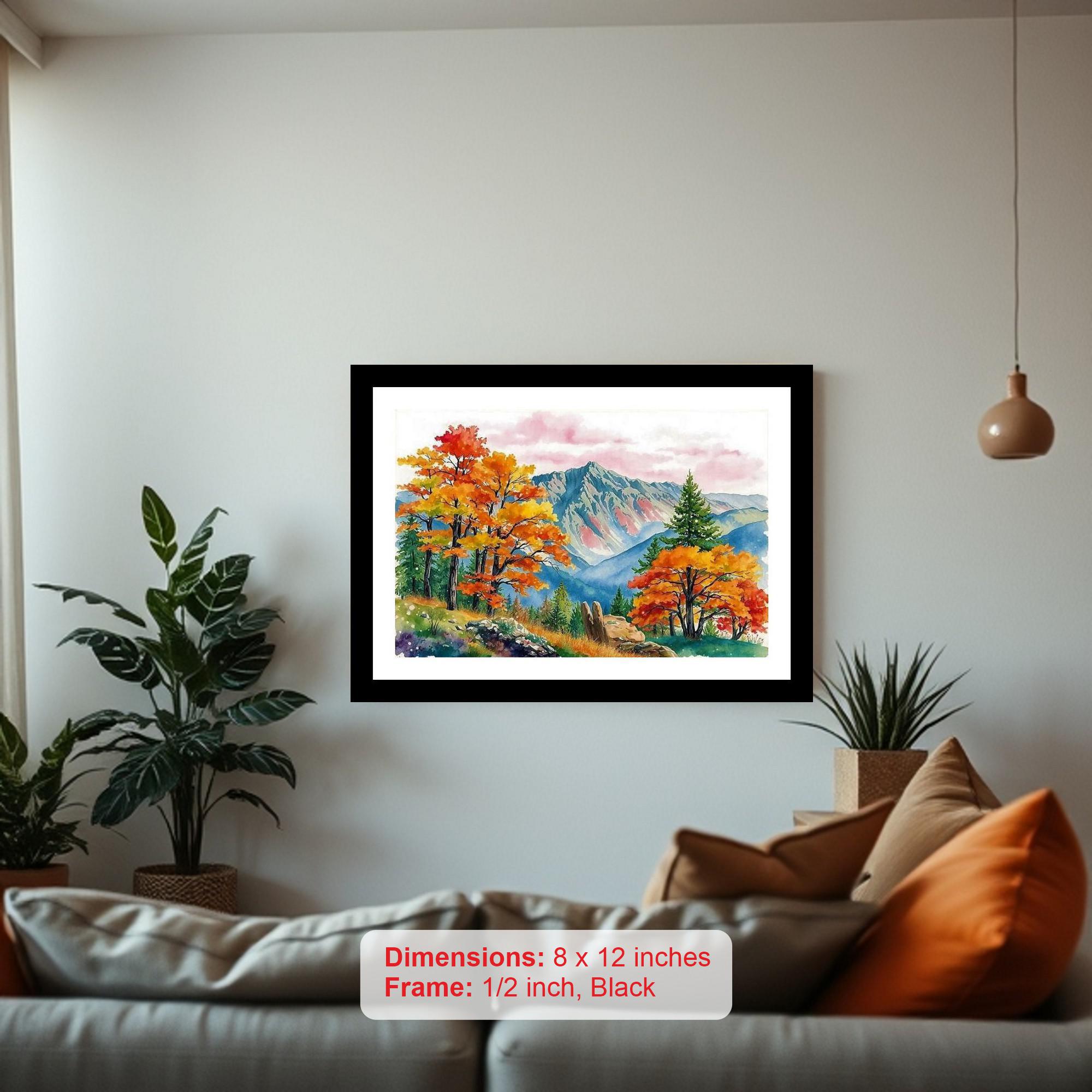 Bring the breathtaking beauty of a vibrant autumnal landscape into your home with this elegantly framed digital reprint. Capturing the essence of fall, this portrait depicts a majestic mountainside ablaze with color. Imagine fiery reds, golden yellows, and rustic oranges painting the trees, creating a breathtaking tapestry against the backdrop of a towering peak. The crisp air and cool hues of the mountain peak enhance the warmth of the season, offering a visually stunning and emotionally comforting scene. This high-quality digital reprint ensures exceptional clarity and detail, preserving the original artistry and allowing you to appreciate every nuance of color and texture. The classic black frame adds a touch of sophistication and timeless elegance, perfectly complementing any decor, from modern minimalist to traditional and rustic styles. Whether you choose to display it in your living room, bedroom, office, or hallway, this framed print will undoubtedly become a focal point, sparking conversation and inspiring a sense of tranquility. Its universal appeal makes it an ideal gift for nature lovers, art enthusiasts, or anyone who appreciates the splendor of the changing seasons. This ready-to-hang piece provides instant visual impact and effortlessly elevates any space. Beyond its aesthetic appeal, this framed print offers a moment of escape, transporting you to the serene beauty of a mountainside painted in the glorious hues of autumn. Experience the wonder of nature every day with this captivating and beautifully presented work of art. This piece promises to infuse your home with warmth, beauty, and a touch of timeless charm that will be enjoyed for years to come.