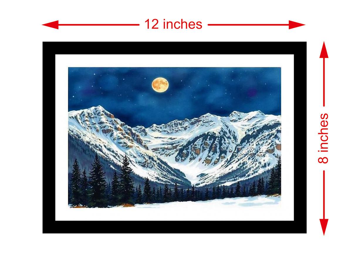 The artwork beautifully captures the moonlit majesty of snow-capped mountains and a starry forest night. The reprint bursts with vibrant colors and captures every delicate detail of the original portrait. The reprint's striking composition beautifully captures the portrait's essence, a testament to digital artistry. Versatile Decor: Ideal for enhancing the aesthetic appeal of living rooms and bedrooms Enhanced Durability: Weather-shield laminated digital print for lasting vibrancy and protection Premium Framing: Constructed with a high-quality, durable fiber frame for long-term stability Precise Dimensions: 30 cm x 20 cm x 1 cm