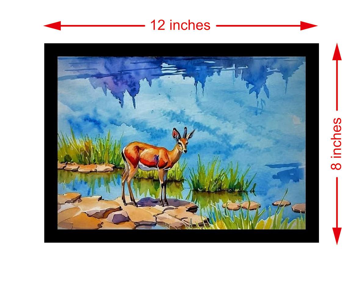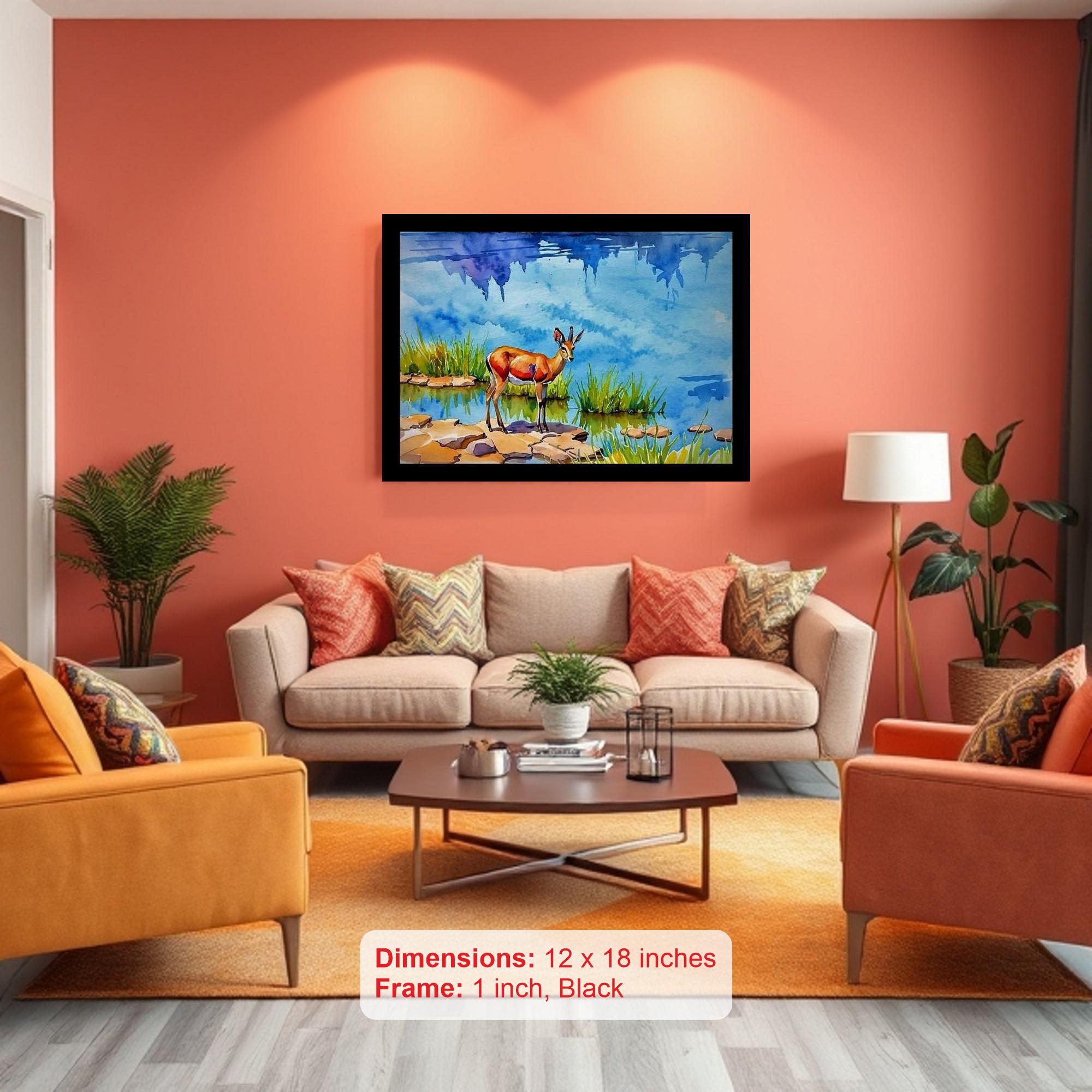 The serene antelope and tranquil water create a captivatingly graceful scene. The colors pop, the detail is stunning - a vibrant, faithful reproduction that truly honors the original portrait. The digital reprint boasts a striking composition, faithfully capturing the portrait's beauty and depth in crisp detail. Versatile Decor: Ideal for enhancing the aesthetic appeal of living rooms and bedrooms Enhanced Durability: Weather-shield laminated digital print for lasting vibrancy and protection Premium Framing: Constructed with a high-quality, durable fiber frame for long-term stability Precise Dimensions: 30 cm x 20 cm x 1 cm