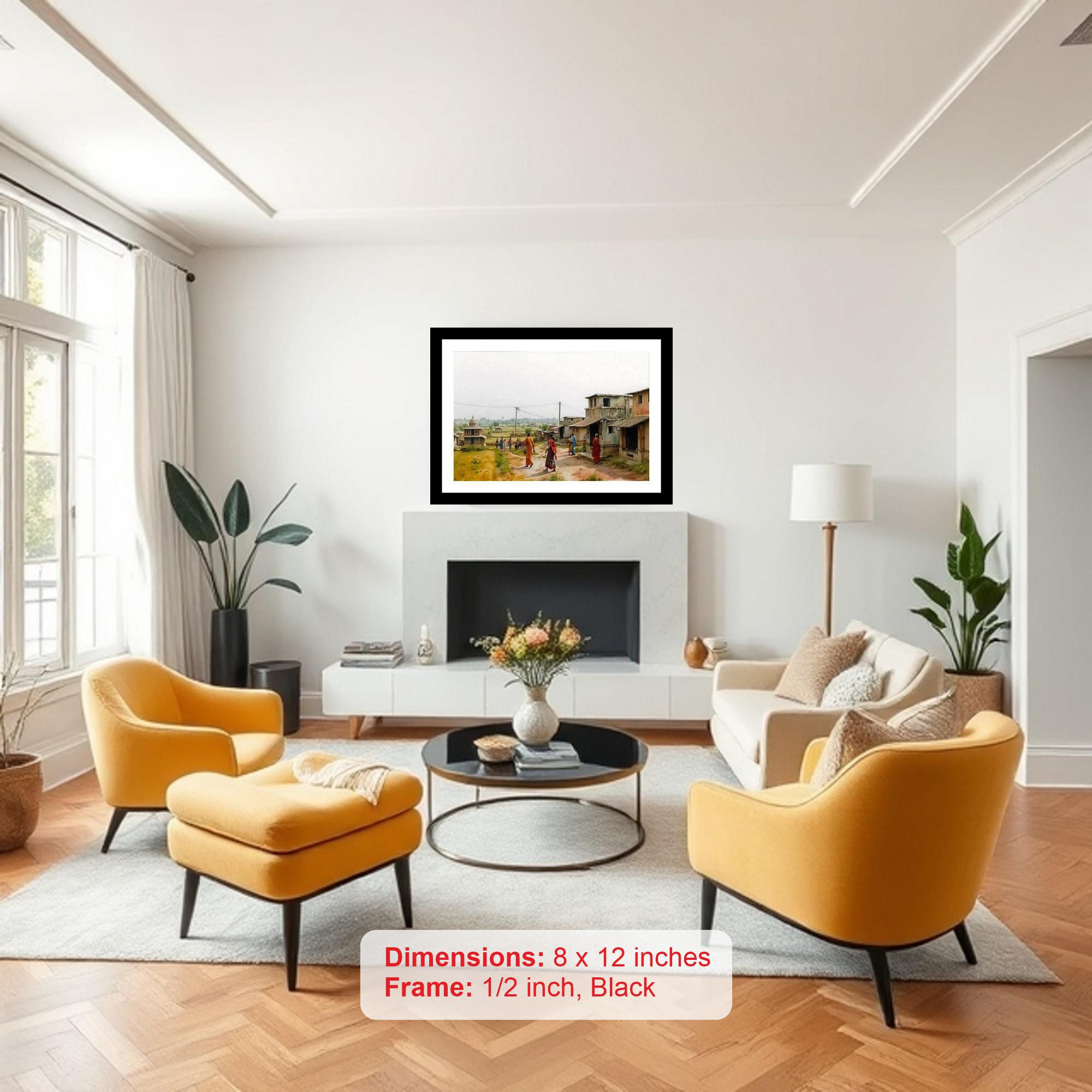 Dusty road, hazy sky, vibrant village life captured beautifully. The reprint's vibrant colors and crisp details beautifully captured the portrait's original charm. Stunning! The digital reprint's striking composition truly captures the portrait's original beauty and essence. Versatile Decor: Ideal for enhancing the aesthetic appeal of living rooms and bedrooms Enhanced Durability: Weather-shield laminated digital print for lasting vibrancy and protection Premium Framing: Constructed with a high-quality, durable fiber frame for long-term stability Precise Dimensions: 30 cm x 20 cm x 1 cm
