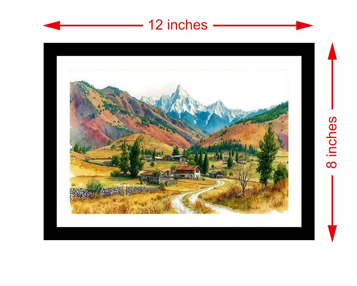 A stunning artwork capturing a peaceful valley village nestled amidst breathtaking mountains. Colors are vibrant and true, print is crisp - a perfect homage to the original portrait. The digital reprint boasts a striking composition, beautifully capturing the portrait's original artistry in stunning clarity. Versatile Decor: Ideal for enhancing the aesthetic appeal of living rooms and bedrooms Enhanced Durability: Weather-shield laminated digital print for lasting vibrancy and protection Premium Framing: Constructed with a high-quality, durable fiber frame for long-term stability Precise Dimensions: 30 cm x 20 cm x 1 cm