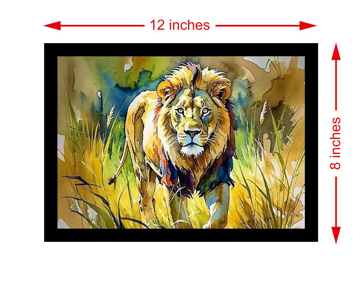 A powerful lion, rendered with captivating intensity, dominates the tall grass in a majestic display of unwavering strength. Colors pop, details are crisp, and the portrait's beauty shines anew. The portrait's digital reprint boasts a striking composition, flawlessly capturing the original's beauty and depth. Versatile Decor: Ideal for enhancing the aesthetic appeal of living rooms and bedrooms Enhanced Durability: Weather-shield laminated digital print for lasting vibrancy and protection Premium Framing: Constructed with a high-quality, durable fiber frame for long-term stability Precise Dimensions: 30 cm x 20 cm x 1 cm