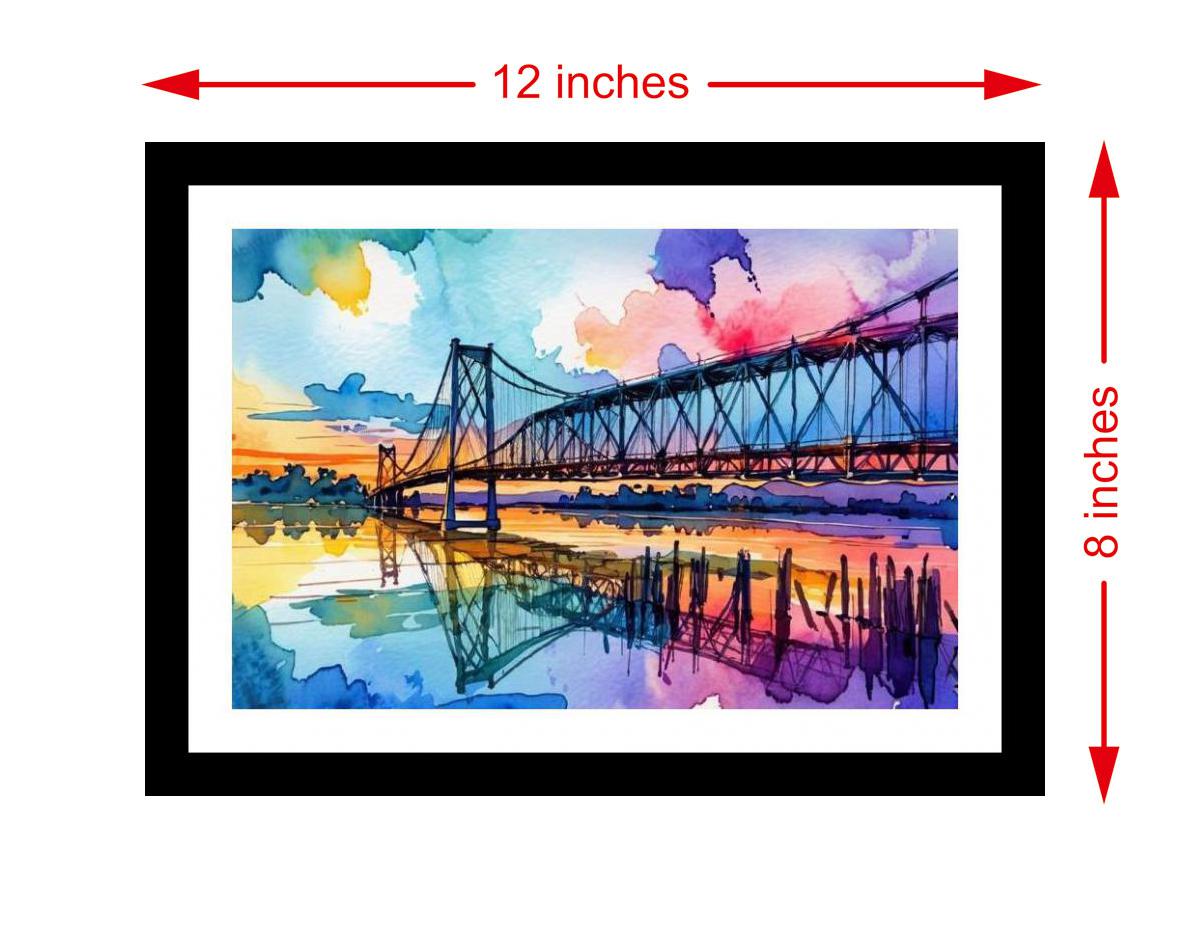 A stunning sunset's vibrant hues paint the water under a majestic bridge - breathtaking! The colors explode with life, and the print captures every delicate detail of the original portrait beautifully! The digital reprint boasts a striking composition, breathing new life into the portrait's beauty. Versatile Decor: Ideal for enhancing the aesthetic appeal of living rooms and bedrooms Enhanced Durability: Weather-shield laminated digital print for lasting vibrancy and protection Premium Framing: Constructed with a high-quality, durable fiber frame for long-term stability Precise Dimensions: 30 cm x 20 cm x 1 cm