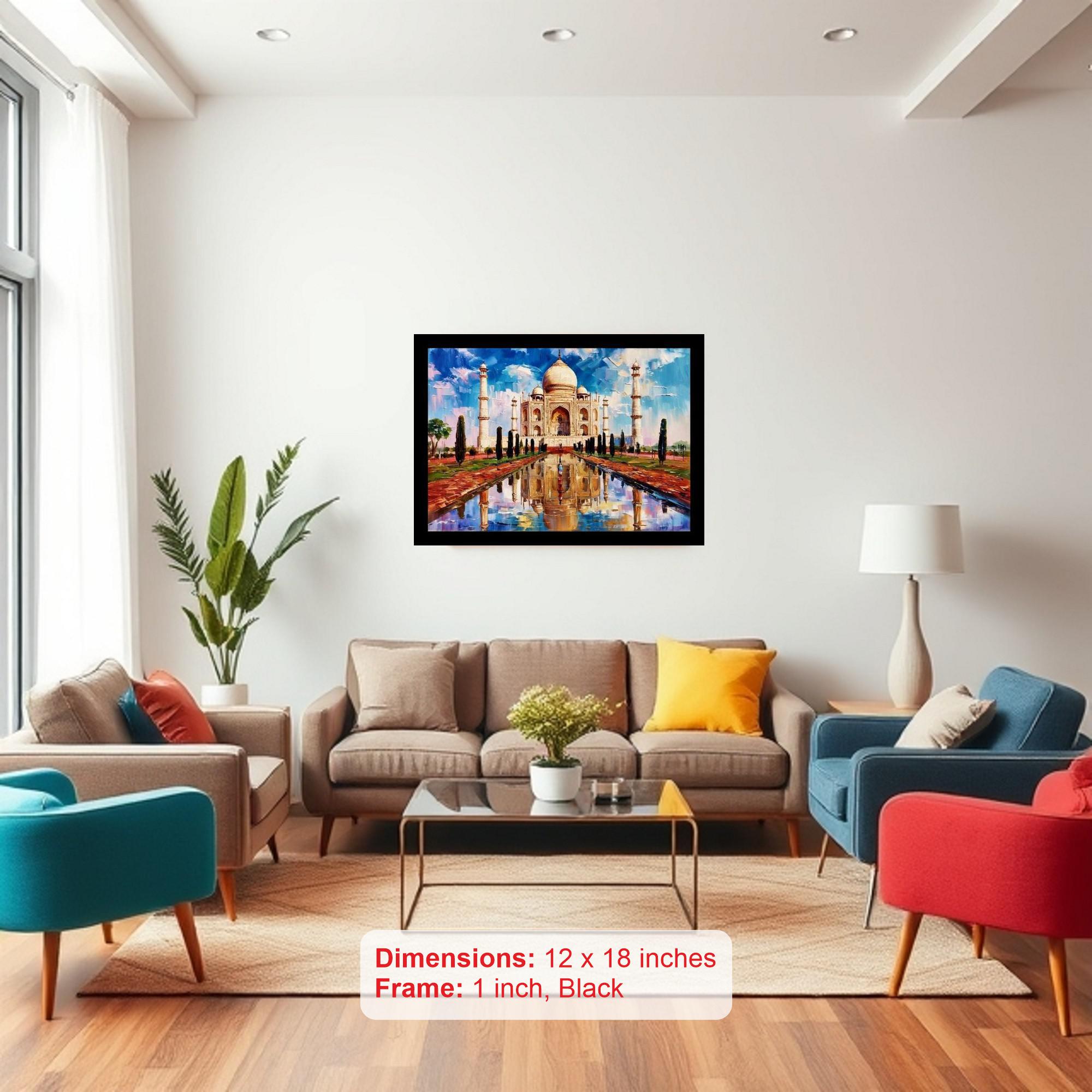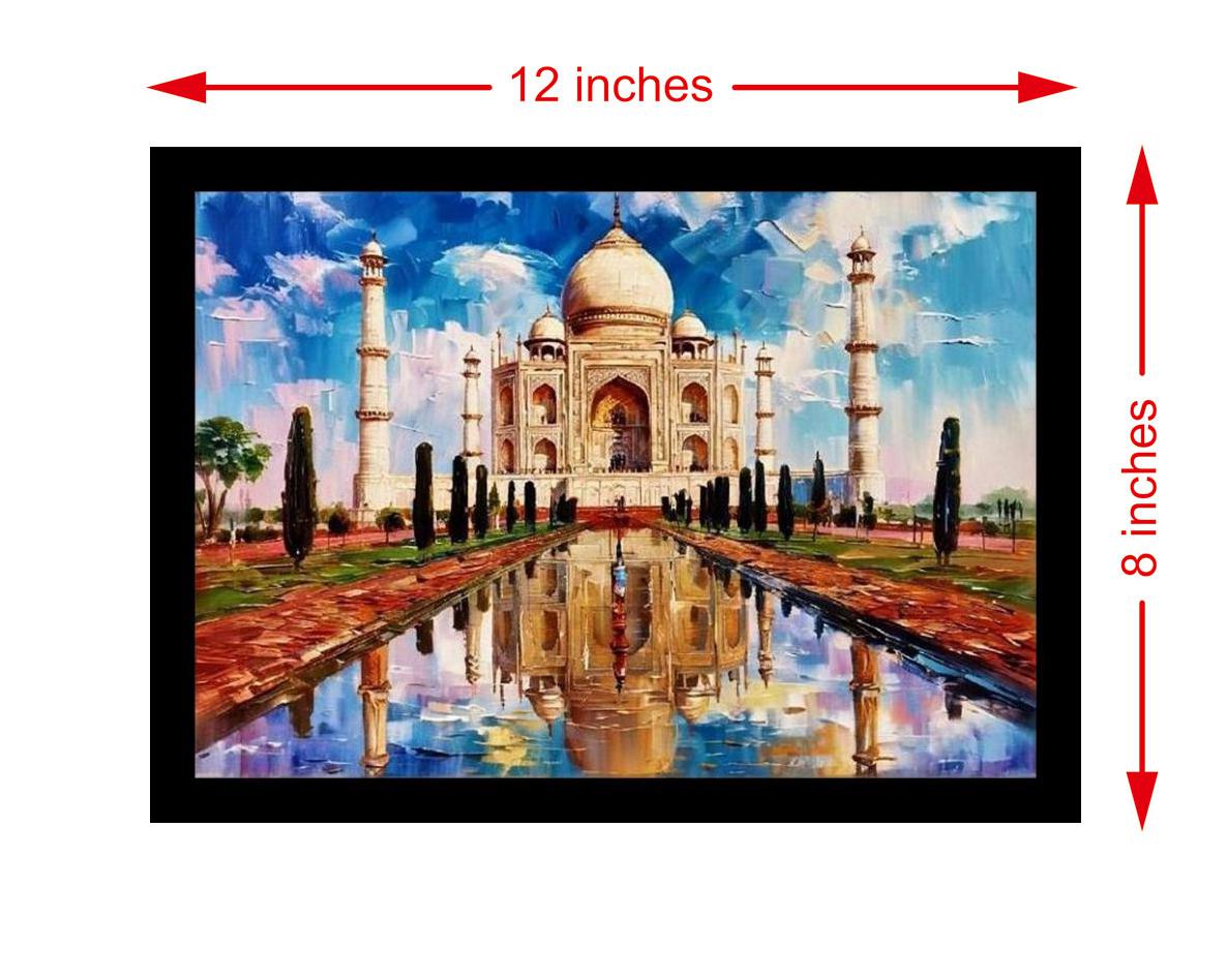 A stunning artistic achievement! The Taj Mahal's mirrored image radiates serene beauty and exquisite detail. The reprint's colors are vibrant and the print is crisp - a stunning reproduction that truly captures the portrait's beauty! The reprint's striking composition beautifully captures the portrait's essence; a truly stunning digital restoration. Versatile Decor: Ideal for enhancing the aesthetic appeal of living rooms and bedrooms Enhanced Durability: Weather-shield laminated digital print for lasting vibrancy and protection Premium Framing: Constructed with a high-quality, durable fiber frame for long-term stability Precise Dimensions: 30 cm x 20 cm x 1 cm