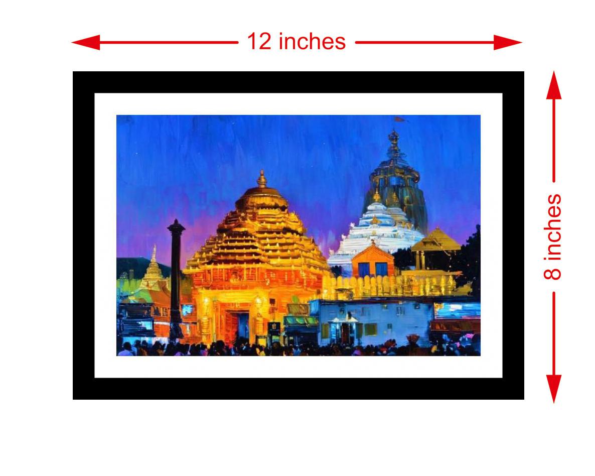 A glorious Jagannath Temple at twilight: gold and blue hues create a vibrant, divine spectacle! The reprint bursts with vibrant color and captures every delicate detail of the original portrait. The digital reprint boasts striking composition, breathing new life into the portrait's beauty. Versatile Decor: Ideal for enhancing the aesthetic appeal of living rooms and bedrooms Enhanced Durability: Weather-shield laminated digital print for lasting vibrancy and protection Premium Framing: Constructed with a high-quality, durable fiber frame for long-term stability Precise Dimensions: 30 cm x 20 cm x 1 cm