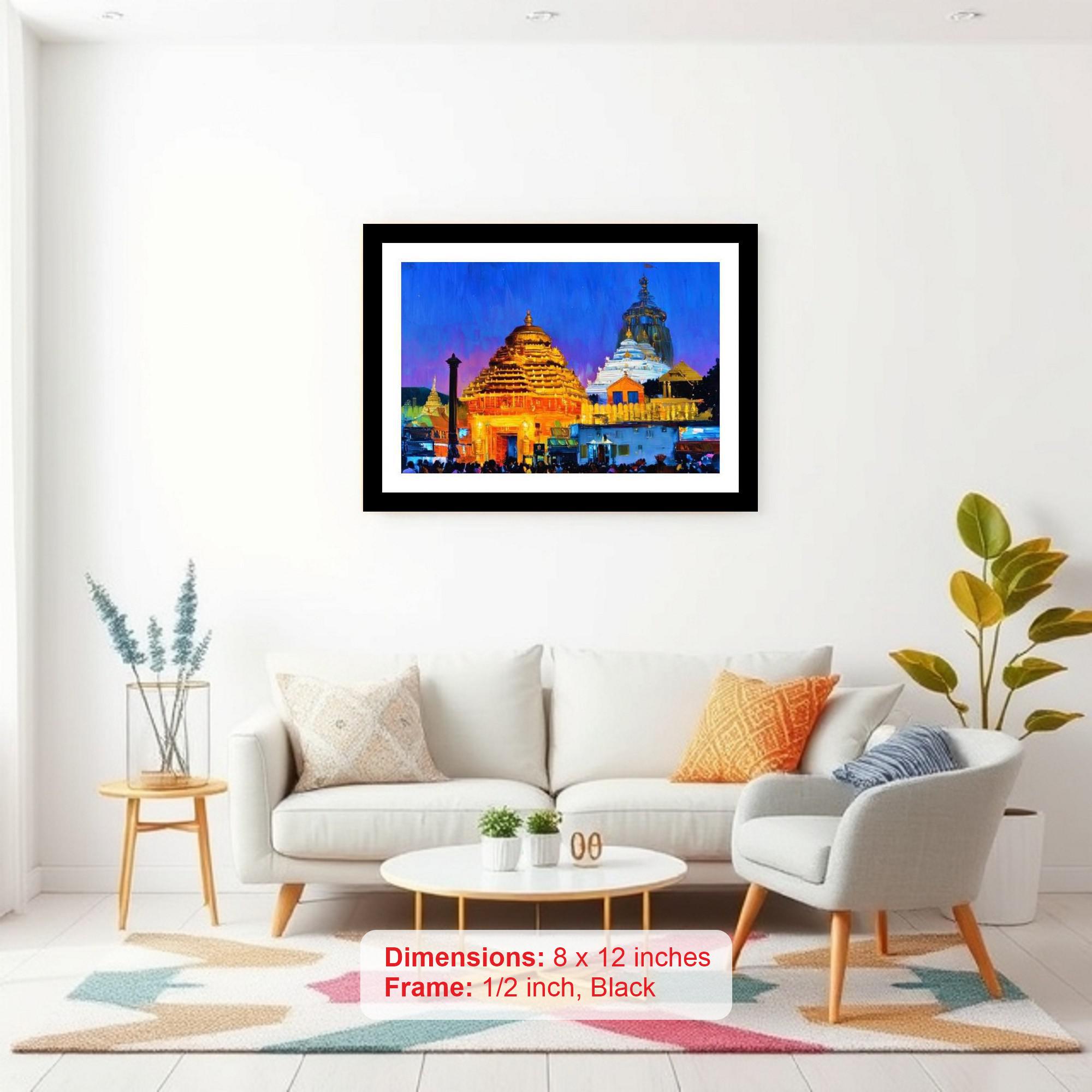 Jagannath Twilight: Golden Temple, Azure Sky. Wall Art, Interior Accents, Framing Solutions, Residential/Commercial Decor, Premium Gifts | Size: 8 x 12 inches