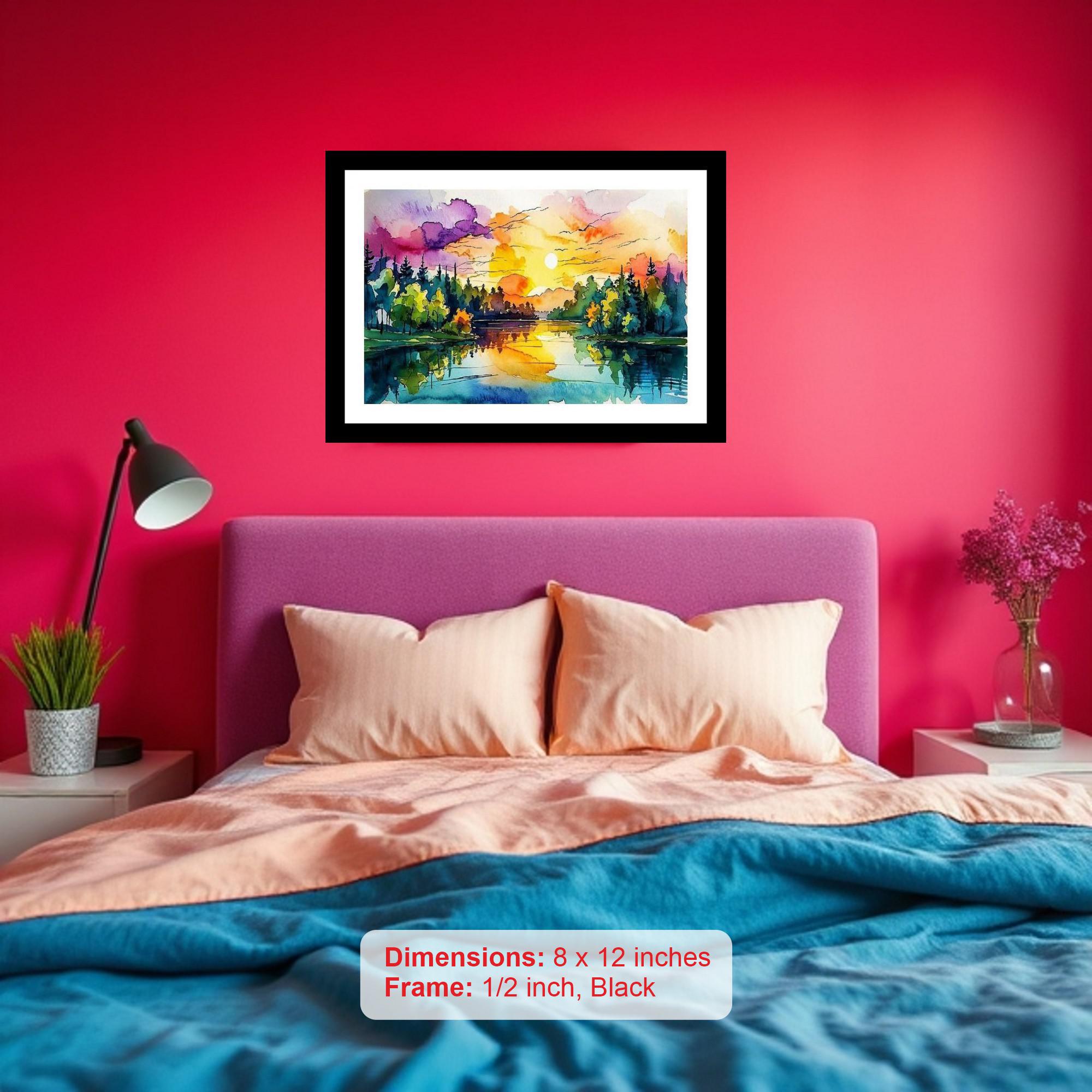 Sunset Lake Portrait: Vibrant Reflection. Wall Art, Interior Accents, Framing Solutions, Residential/Commercial Decor, Premium Gifts | Size: 8 x 12 inches