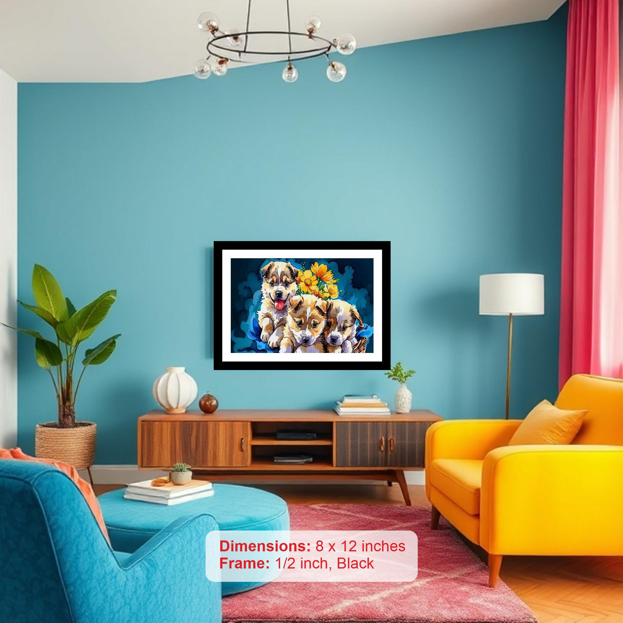 This artwork is utterly charming! Adorable puppies and vibrant wildflowers create a heartwarming, delightful scene. Colors are vibrant and true, capturing every detail of the original portrait perfectly. The reprint's composition is stunning! It perfectly captures the portrait's original beauty with digital clarity. Versatile Decor: Ideal for enhancing the aesthetic appeal of living rooms and bedrooms Enhanced Durability: Weather-shield laminated digital print for lasting vibrancy and protection Constructed with a high-quality, durable fiber frame for long-term stability Precise Dimensions: 30 cm x 20 cm x 1 cm