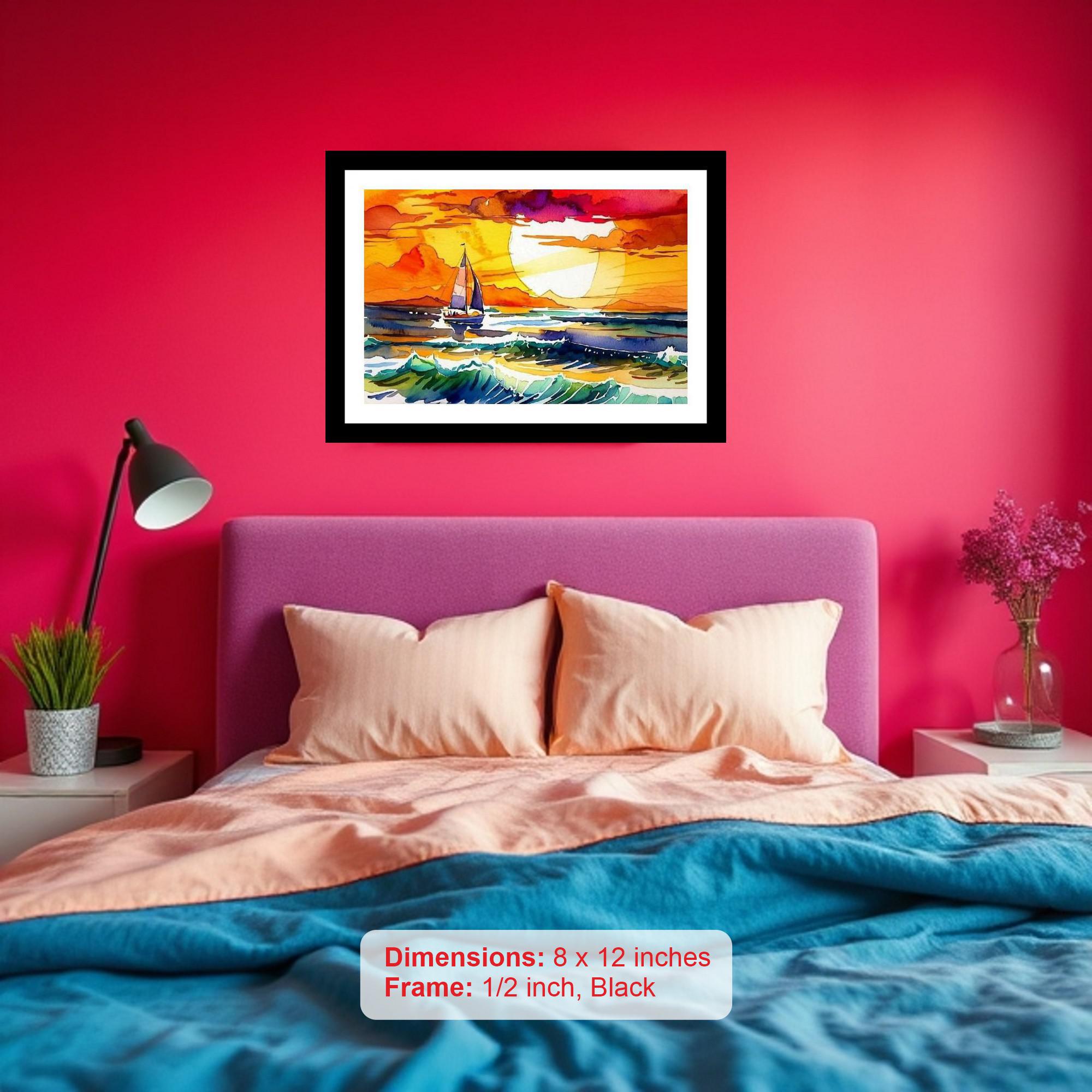 Fiery sunset, vibrant waves, and a sailboat gliding in serene beauty. The reprint's colors sing and the print is so sharp, it captures every nuance of the stunning original portrait! The digital reprint's composition is striking! The subject's gaze and the balanced elements create a captivating image. Versatile Decor: Ideal for enhancing the aesthetic appeal of living rooms and bedrooms Enhanced Durability: Weather-shield laminated digital print for lasting vibrancy and protection Premium Framing: Constructed with a high-quality, durable fiber frame for long-term stability Precise Dimensions: 30 cm x 20 cm x 1 cm