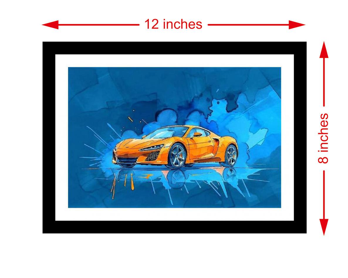 A vibrant orange car bursts from cool blue watercolors, a stunning fusion of energy and fluidity! The colors are vibrant and the print captures every delicate detail of the portrait beautifully. The digital reprint's striking composition truly captures the portrait's original beauty and artistic intention. Versatile Decor: Ideal for enhancing the aesthetic appeal of living rooms and bedrooms Enhanced Durability: Weather-shield laminated digital print for lasting vibrancy and protection Premium Framing: Constructed with a high-quality, durable fiber frame for long-term stability Precise Dimensions: 30 cm x 20 cm x 1 cm