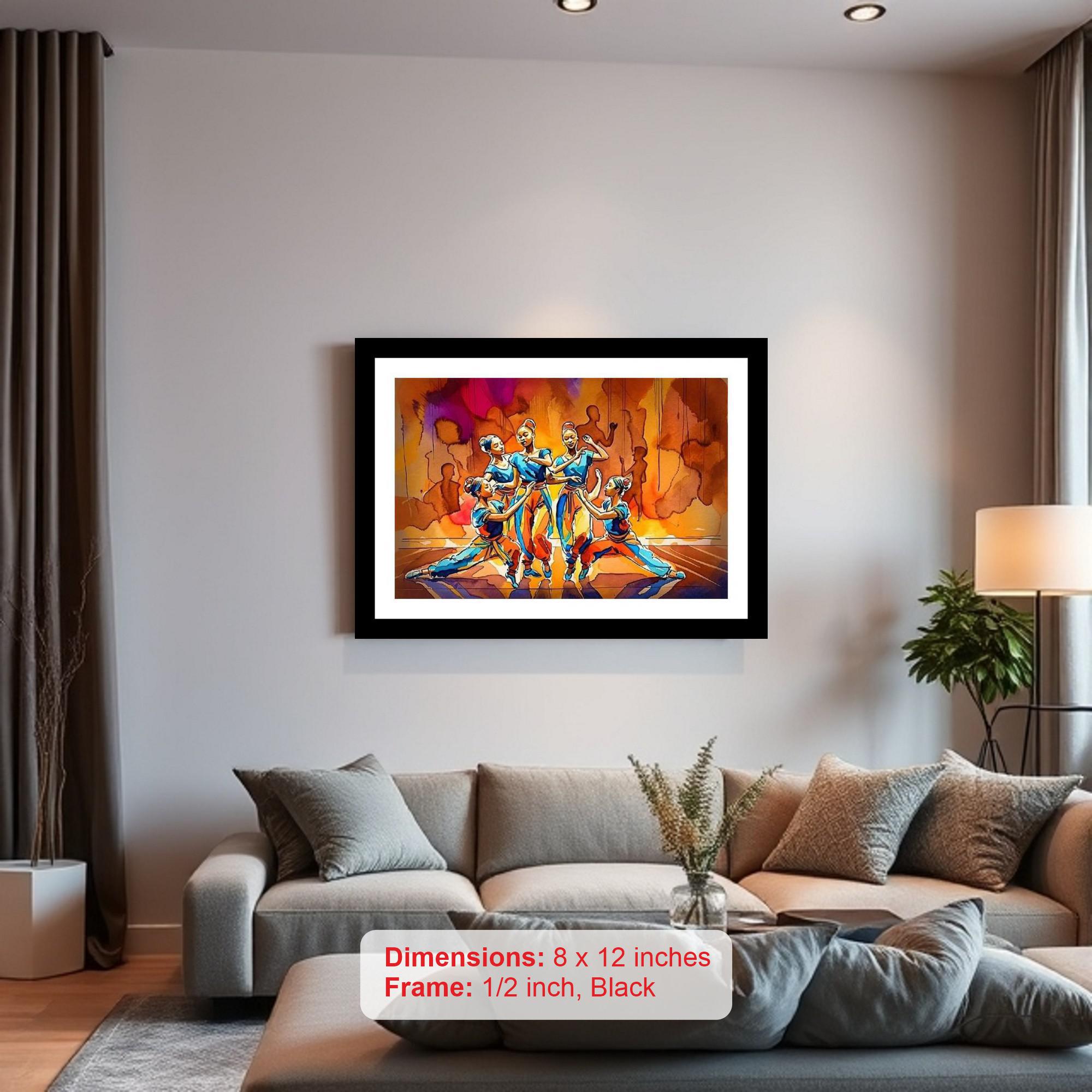 Adorn your home with timeless elegance and captivating artistry with our classic black framed digital reprint of a mesmerizing portrait depicting five dancers in vibrantly colored costumes. This exquisite piece showcases a moment frozen in time, where five figures move in perfect harmony, their synchronized routine a testament to grace, skill, and the power of artistic expression. The rich, black frame adds a touch of opulence and classic charm, enhancing the overall aesthetic and making it a perfect addition to any decor, from traditional to modern. Imagine this stunning artwork gracing your living room, dining room, bedroom, or office, instantly elevating the ambiance with its refined beauty and captivating narrative. The intricate details of the dancers' costumes, the subtle nuances of their expressions, and the dynamic composition of the scene are all meticulously reproduced to capture the essence of the original artwork. This digital reprint offers exceptional clarity and color accuracy, ensuring that you can appreciate the beauty and artistry of this timeless masterpiece for years to come. It's more than just a piece of art; it's a conversation starter, a focal point, and a reflection of your appreciation for beauty and culture. Bring the allure of vintage elegance and the energy of performance art into your home with this stunning framed print. It also makes a thoughtful and sophisticated gift for art lovers, dance enthusiasts, or anyone who appreciates the finer things in life.