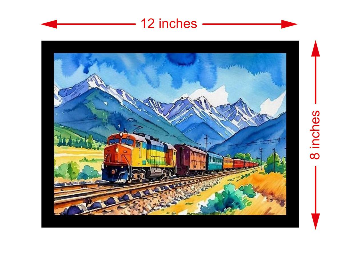 A vibrant train slices through stunning mountains, a masterpiece of motion and majestic scenery! The reprint bursts with vibrant colors and boasts incredibly crisp, detailed printing, truly honoring the original portrait. The digital reprint boasts a striking composition, faithfully capturing the portrait's beauty with remarkable clarity. Versatile Decor: Ideal for enhancing the aesthetic appeal of living rooms and bedrooms Enhanced Durability: Weather-shield laminated digital print for lasting vibrancy and protection Premium Framing: Constructed with a high-quality, durable fiber frame for long-term stability Precise Dimensions: 30 cm x 20 cm x 1 cm