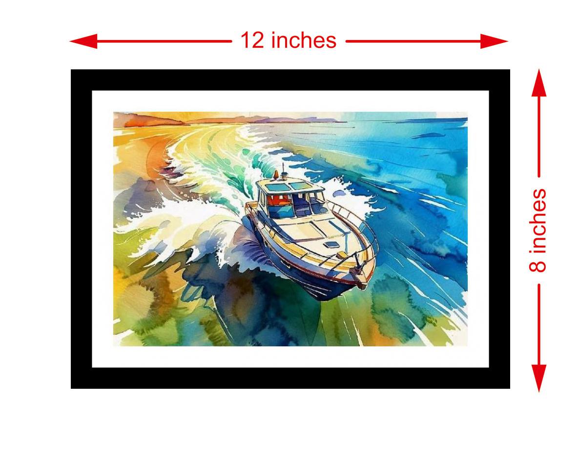 A dynamic scene: turquoise waters explode with color as a speedboat carves its path, leaving a vibrant wake. The colors pop, and the print is so sharp you can see every detail of the original portrait. The digital reprint boasts a strikingly composed portrait; its artistry shines anew. Versatile Decor: Ideal for enhancing the aesthetic appeal of living rooms and bedrooms Enhanced Durability: Weather-shield laminated digital print for lasting vibrancy and protection Premium Framing: Constructed with a high-quality, durable fiber frame for long-term stability Precise Dimensions: 30 cm x 20 cm x 1 cm