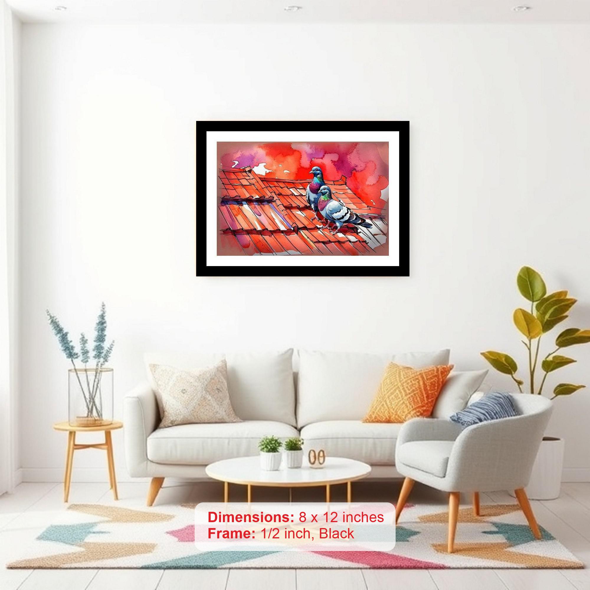 Fiery sunset bathes terracotta & vibrant pigeons in breathtaking beauty! A stunning, evocative piece. Colors are vibrant and true, capturing every detail of the original portrait perfectly. The reprint's composition is stunning; the artist's vision shines anew with masterful digital clarity. Versatile Decor: Ideal for enhancing the aesthetic appeal of living rooms and bedrooms Enhanced Durability: Weather-shield laminated digital print for lasting vibrancy and protection Premium Framing: Constructed with a high-quality, durable fiber frame for long-term stability Precise Dimensions: 30 cm x 20 cm x 1 cm