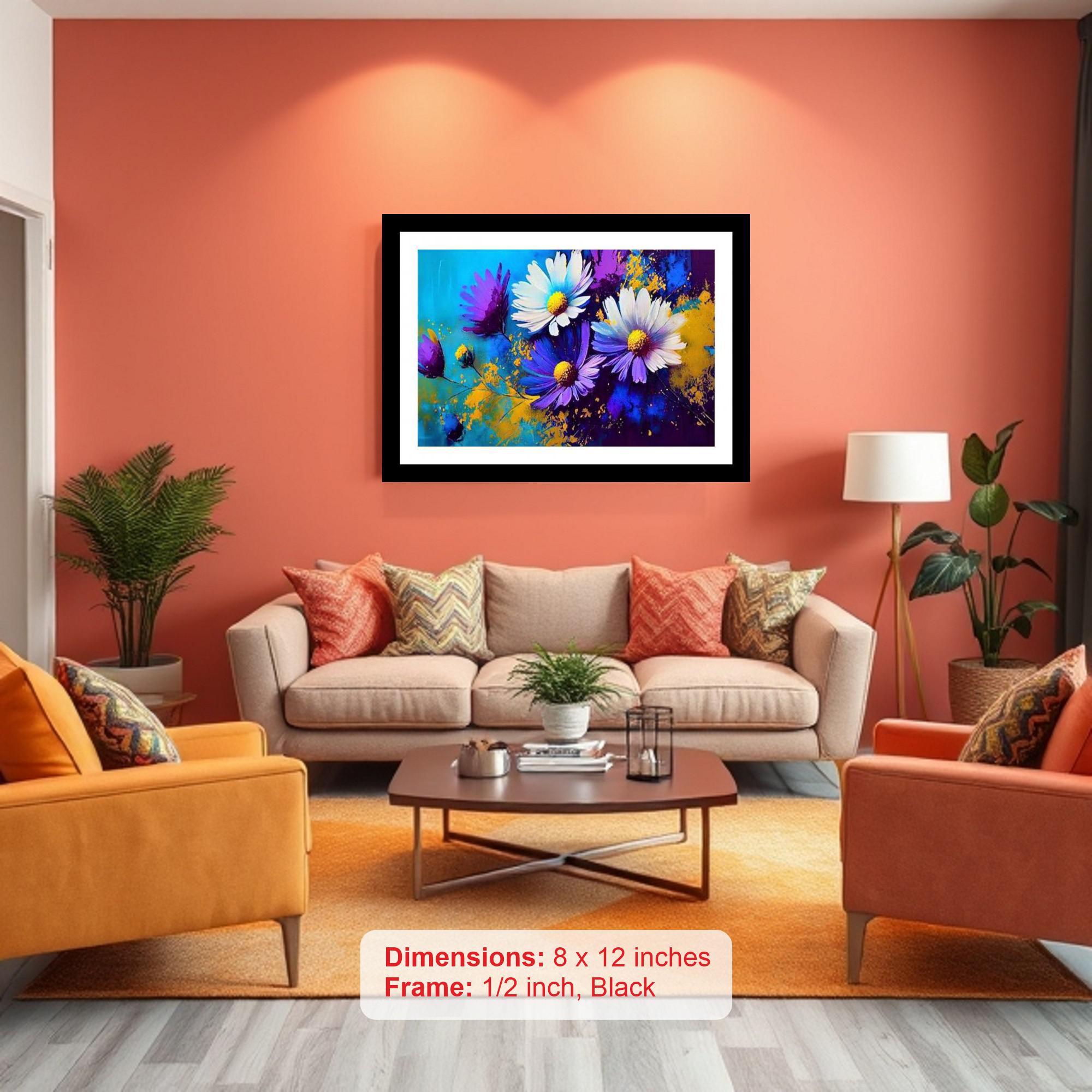 The vibrant wildflowers explode with color, beautifully contrasted against a dynamic, abstract backdrop. The colors are vibrant and the print is sharp, capturing every exquisite detail of the portrait. The reprint's composition is striking; its digital artistry enhances the portrait's inherent beauty, captivating the viewer. Versatile Decor: Ideal for enhancing the aesthetic appeal of living rooms and bedrooms Enhanced Durability: Weather-shield laminated digital print for lasting vibrancy and protection Premium Framing: Constructed with a high-quality, durable fiber frame for long-term stability Precise Dimensions: 30 cm x 20 cm x 1 cm