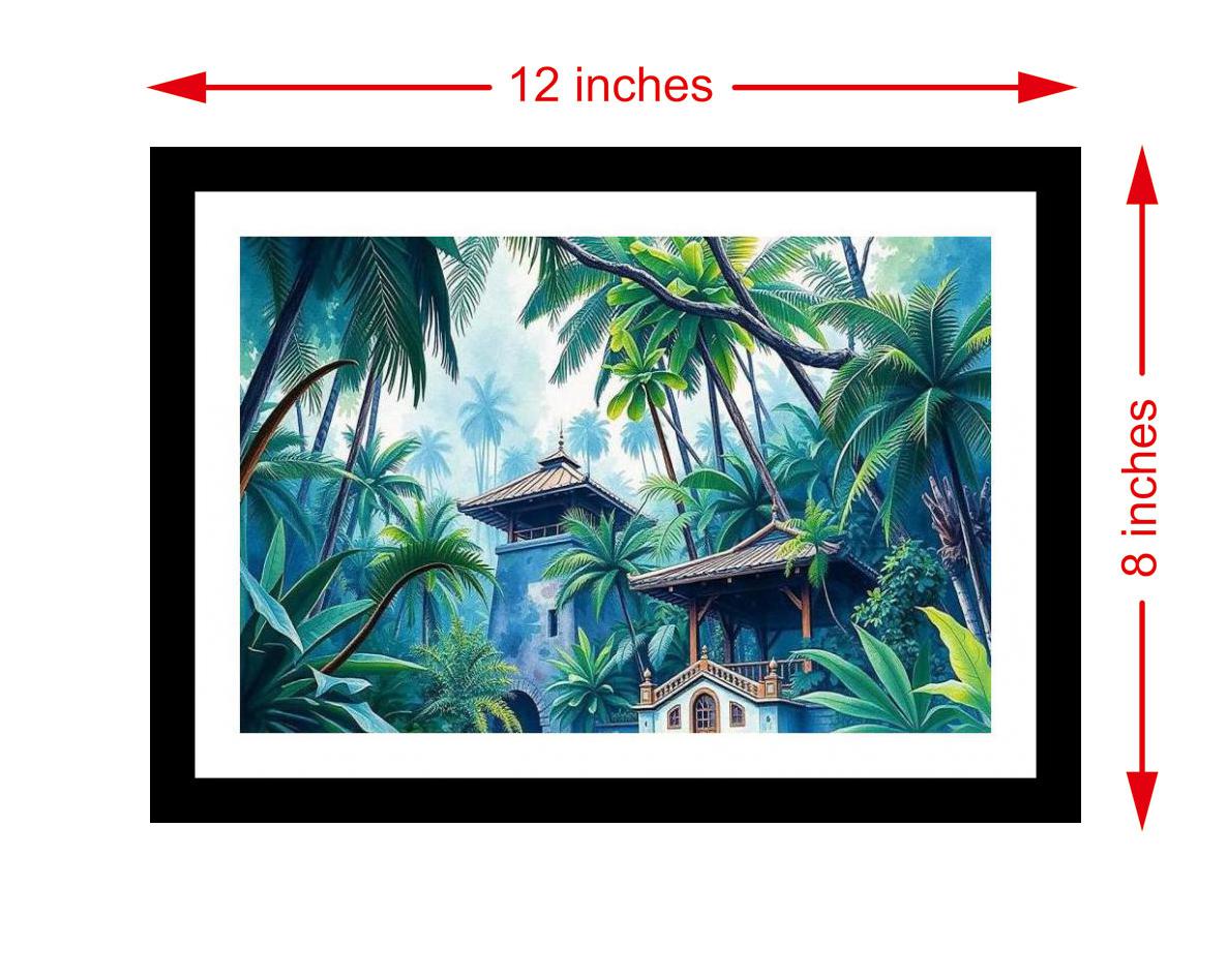 A stunning, serene oasis artfully blends tropical lushness with subtle Asian architecture. The colors burst from the canvas, and the print is so crisp, every detail of the original portrait shines anew. The reprint's composition is stunning; masterful use of light and shadow truly captures the portrait's original beauty. Versatile Decor: Ideal for enhancing the aesthetic appeal of living rooms and bedrooms Enhanced Durability: Weather-shield laminated digital print for lasting vibrancy and protection Premium Framing: Constructed with a high-quality, durable fiber frame for long-term stability Precise Dimensions: 30 cm x 20 cm x 1 cm