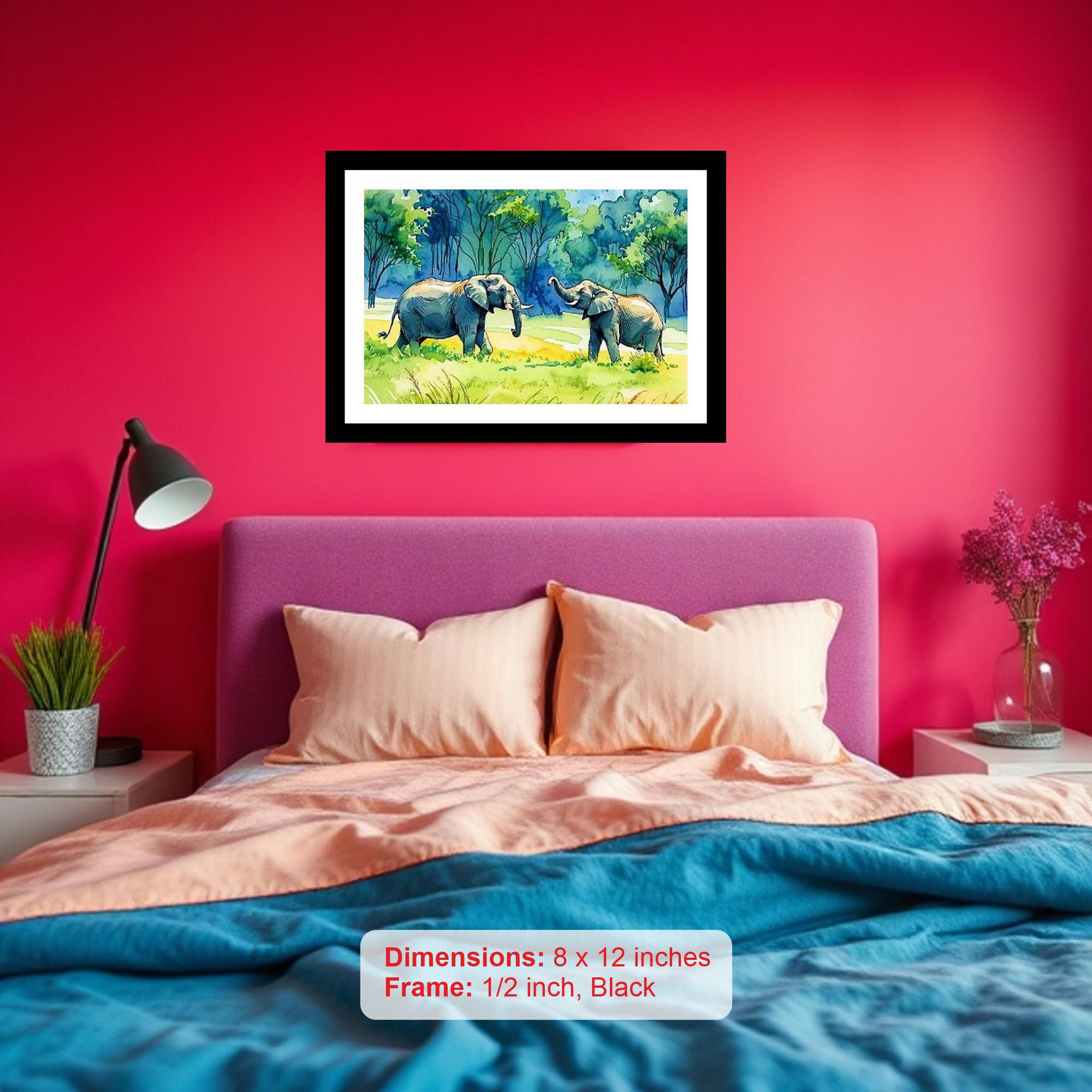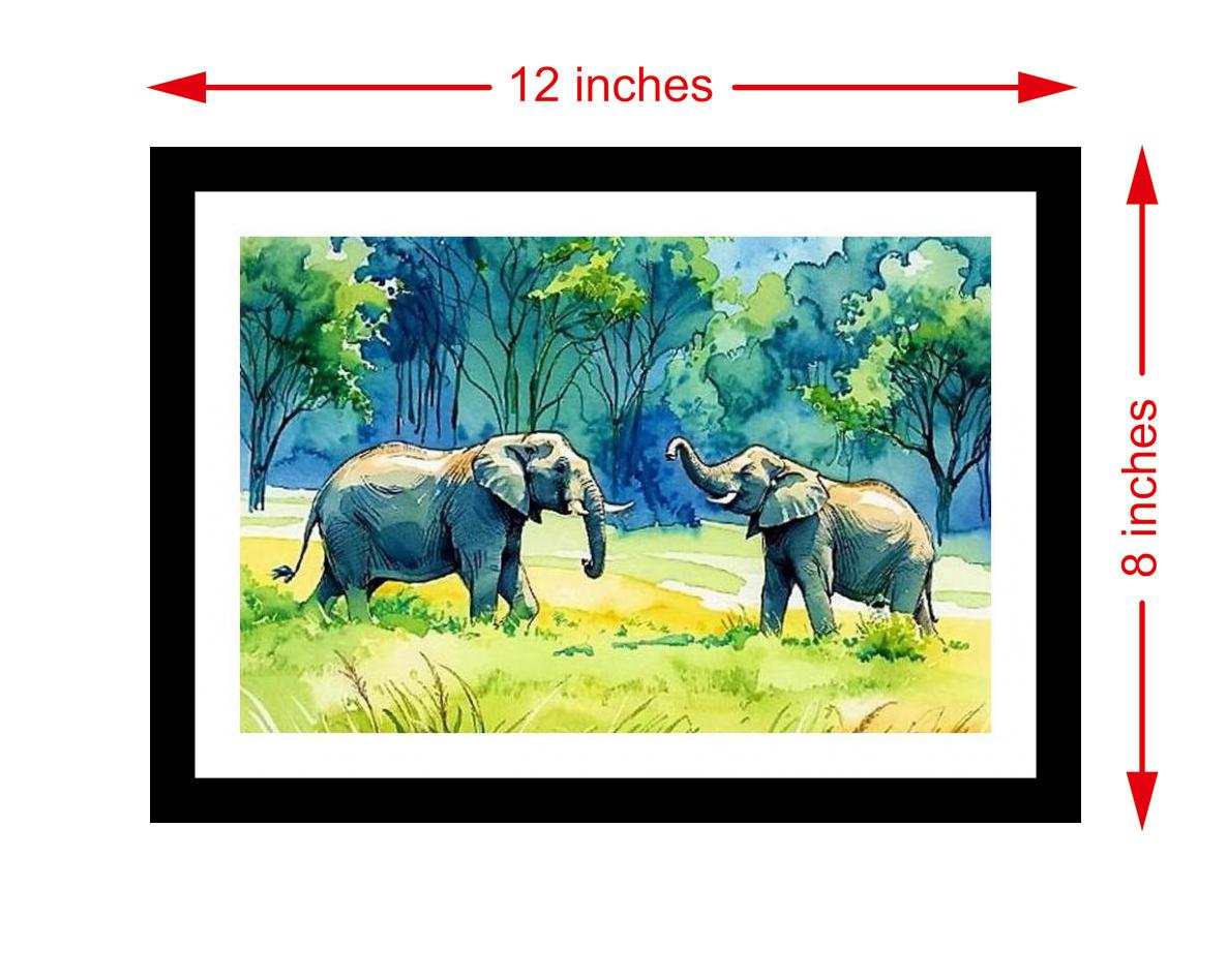 Serene savanna scene: Two elephants graze peacefully, a vibrant testament to nature's gentle giants. The reprint perfectly captures the original's rich colors and intricate details - a true work of art. The digital reprint boasts a striking composition, breathing new life into the portrait's exquisite beauty. Versatile Decor: Ideal for enhancing the aesthetic appeal of living rooms and bedrooms Enhanced Durability: Weather-shield laminated digital print for lasting vibrancy and protection Premium Framing: Constructed with a high-quality, durable fiber frame for long-term stability Precise Dimensions: 30 cm x 20 cm x 1 cm
