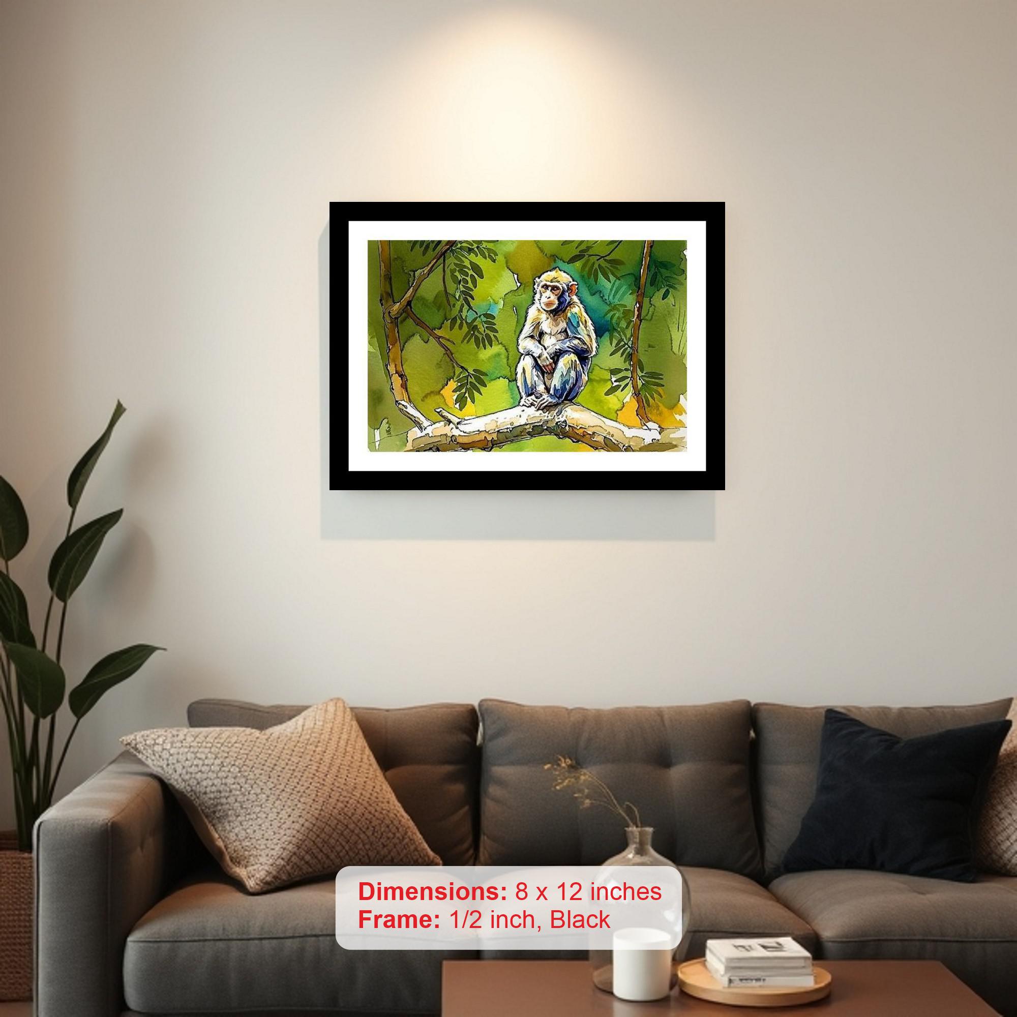 A thoughtful monkey amidst verdant leaves captures a beautiful moment of primate contemplation in nature. Colors are vibrant, print is sharp and captures every detail of the beautiful portrait. The reprint's composition is stunning! The digital artistry truly elevates this already gorgeous portrait. Versatile Decor: Ideal for enhancing the aesthetic appeal of living rooms and bedrooms Enhanced Durability: Weather-shield laminated digital print for lasting vibrancy and protection Premium Framing: Constructed with a high-quality, durable fiber frame for long-term stability Precise Dimensions: 30 cm x 20 cm x 1 cm