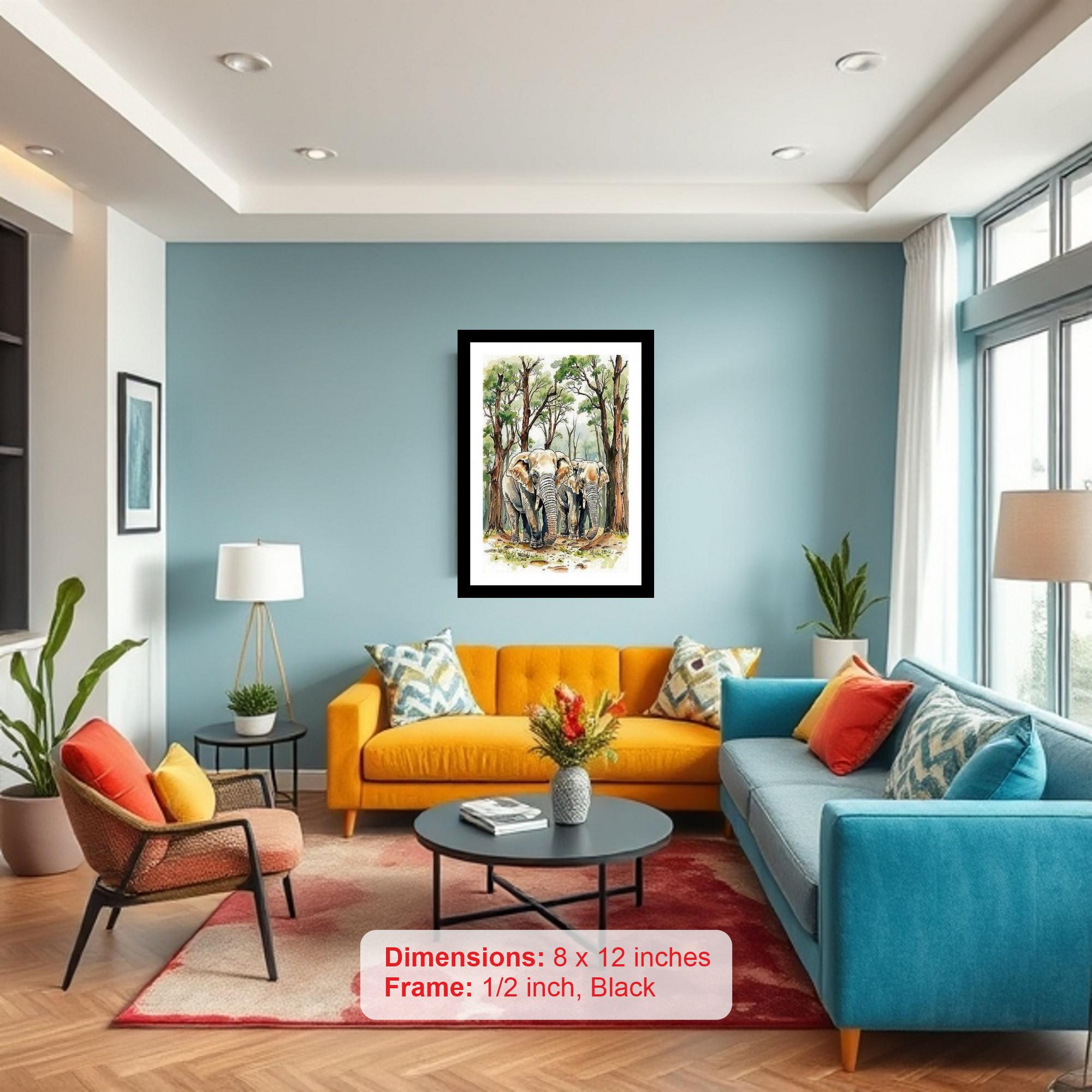 Elephants in Forest: Serene Stroll Portrait Wall Art, Interior Accents, Framing Solutions, Residential/Commercial Decor, Premium Gifts | Size: 8 x 12 inches
