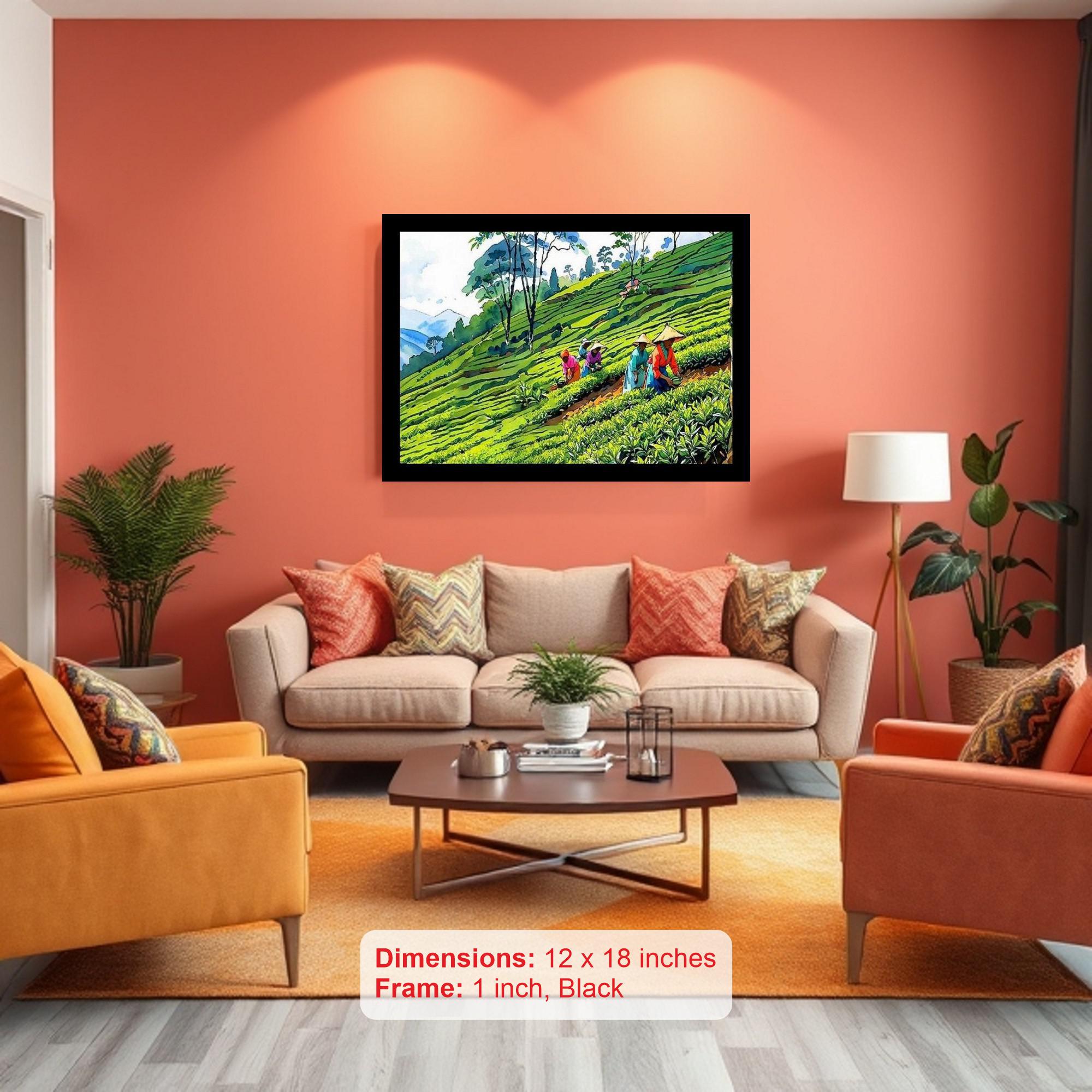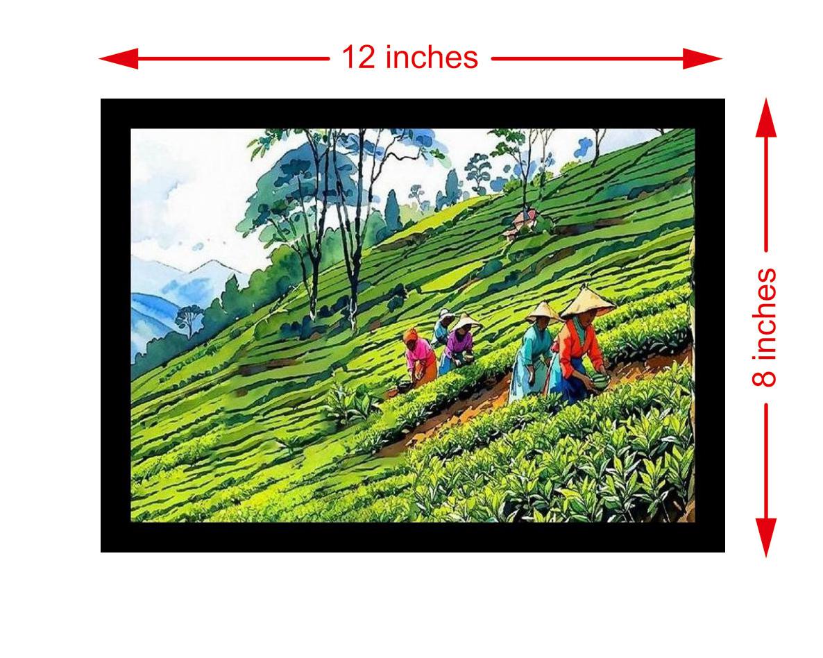 A stunning depiction of hardworking farmers harvesting tea on vibrant terraces, a testament to human effort and natural beauty. The reprint's vibrant colors and crisp details perfectly capture the portrait's beauty, a true work of art. The digital reprint boasts a striking composition, breathing new life into the portrait's timeless beauty. Versatile Decor: Ideal for enhancing the aesthetic appeal of living rooms and bedrooms Enhanced Durability: Weather-shield laminated digital print for lasting vibrancy and protection Premium Framing: Constructed with a high-quality, durable fiber frame for long-term stability Precise Dimensions: 30 cm x 20 cm x 1 cm