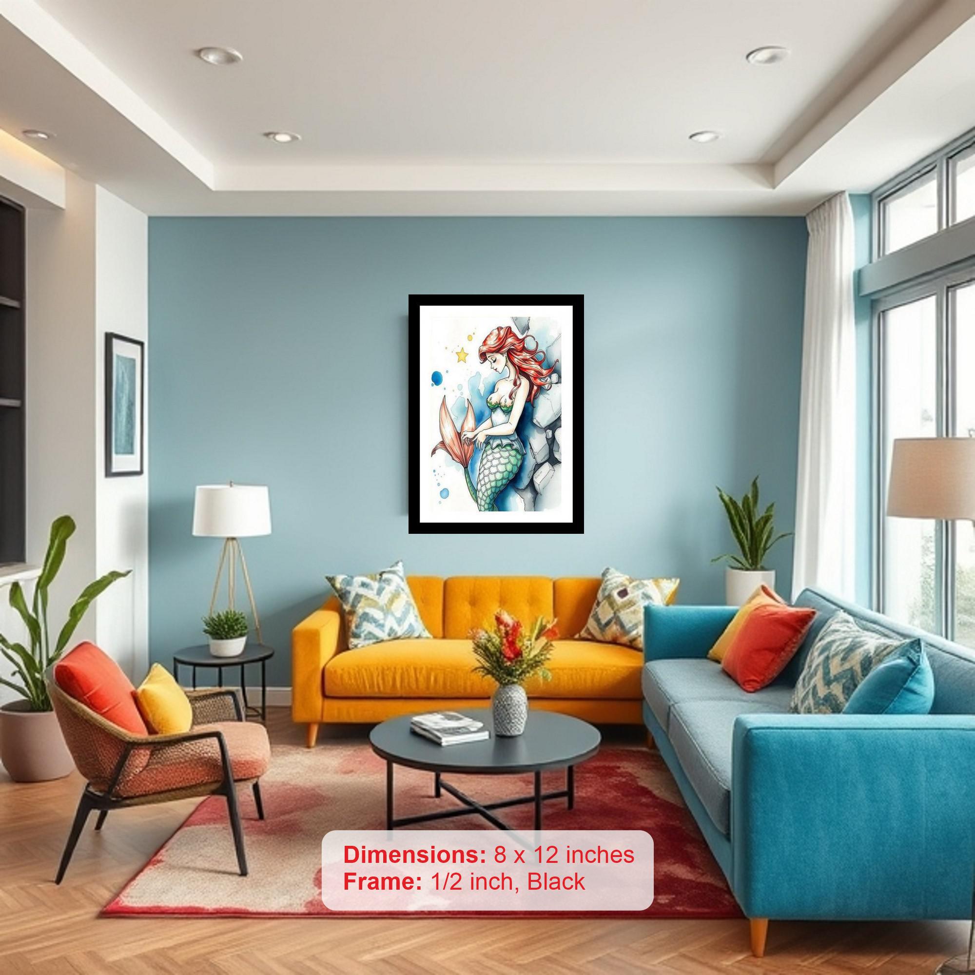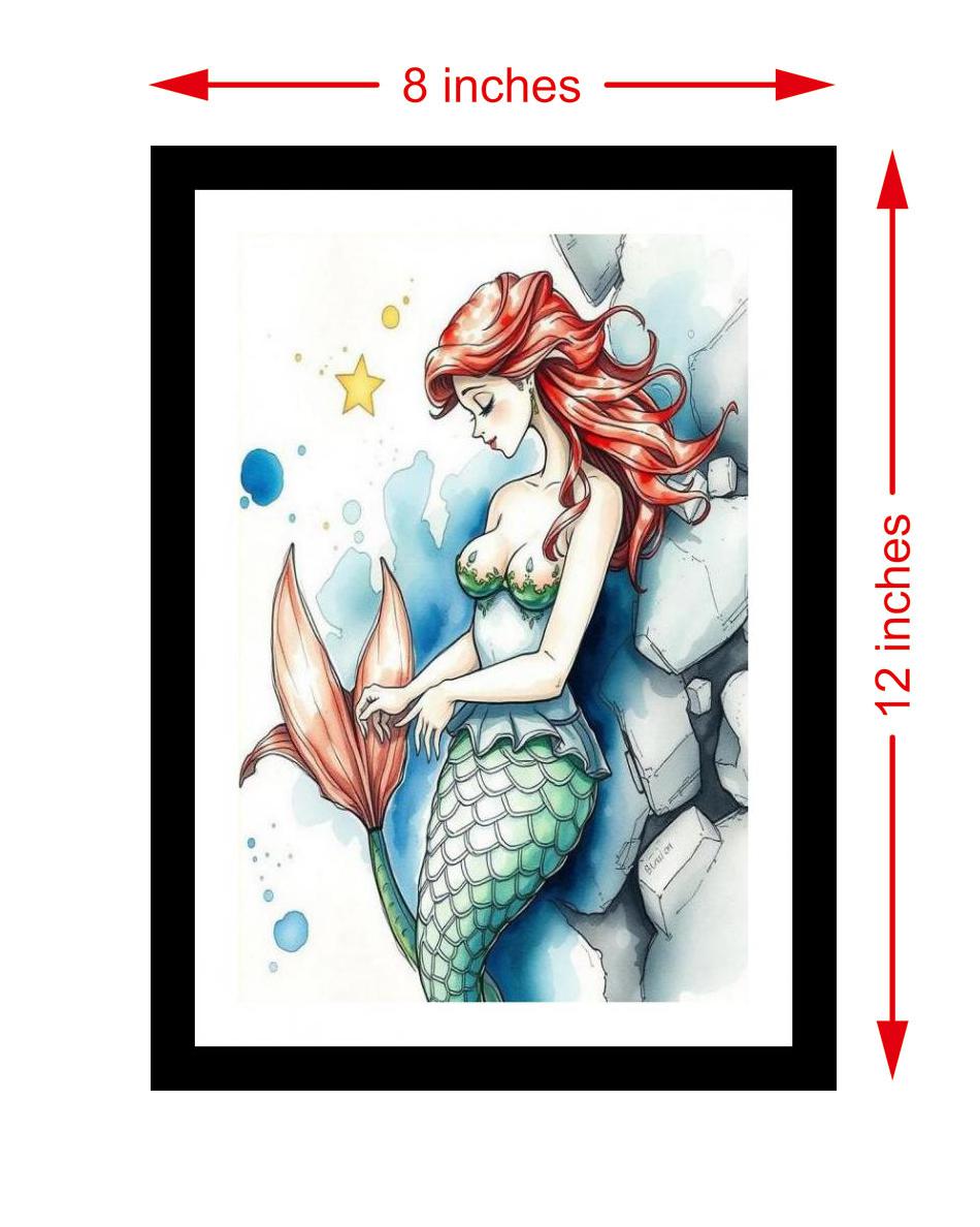 A stunning mermaid with fiery red hair and a flower-adorned tail creates a vision of serene beauty against the rocks. The reprint bursts with vibrant color and captures every delicate detail of the original portrait. The reprint's composition is stunning; a digital rebirth that perfectly captures the portrait's original beauty. Versatile Decor: Ideal for enhancing the aesthetic appeal of living rooms and bedrooms Enhanced Durability: Weather-shield laminated digital print for lasting vibrancy and protection Premium Framing: Constructed with a high-quality, durable fiber frame for long-term stability Precise Dimensions: 30 cm x 20 cm x 1 cm