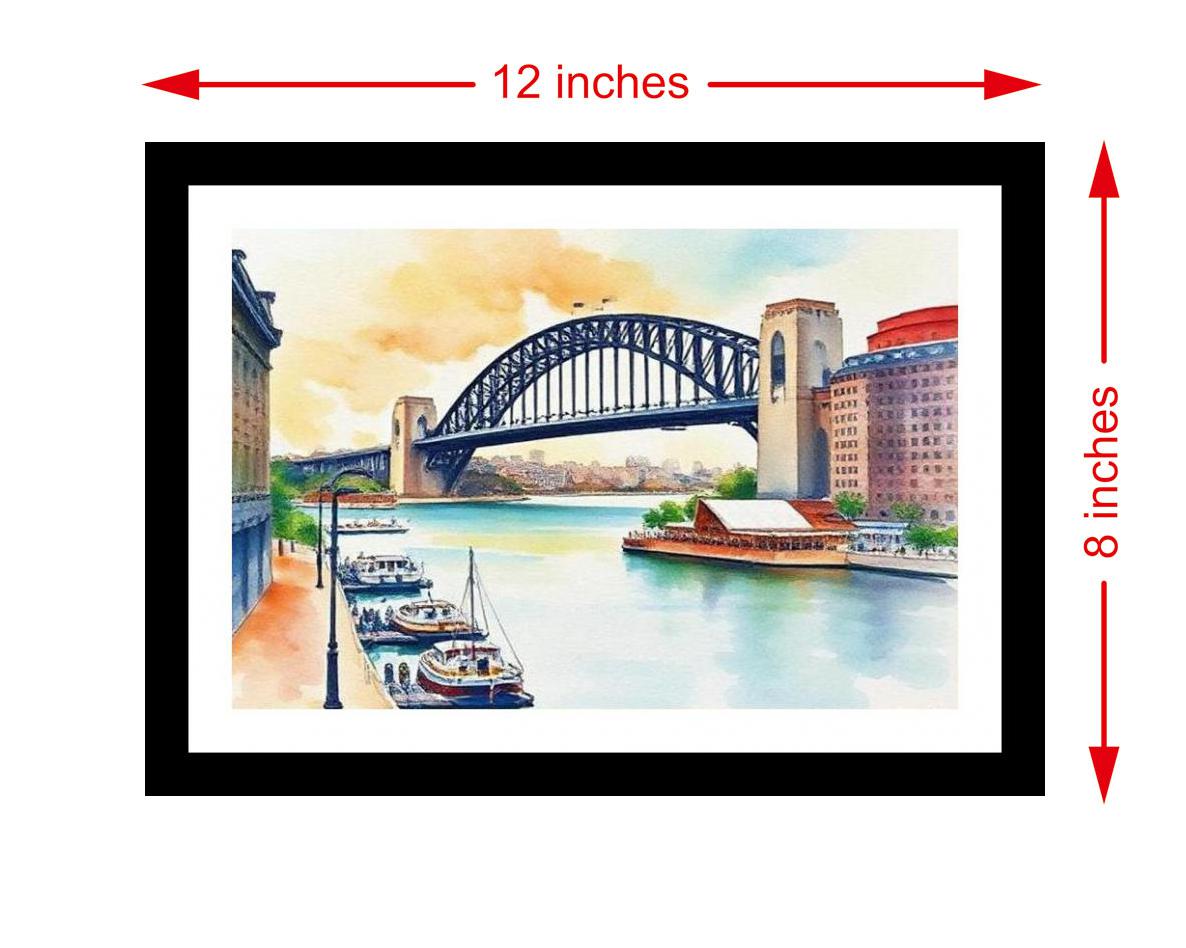 Stunning sunset bathes the iconic Harbour Bridge as gentle waves cradle bobbing boats - a perfect Sydney moment. The reprint's vibrant colors and crisp details truly capture the portrait's original beauty. The portrait's digital reprint boasts a strikingly composed layout, enhancing its beauty and drawing the eye in. Versatile Decor: Ideal for enhancing the aesthetic appeal of living rooms and bedrooms Enhanced Durability: Weather-shield laminated digital print for lasting vibrancy and protection Premium Framing: Constructed with a high-quality, durable fiber frame for long-term stability Precise Dimensions: 30 cm x 20 cm x 1 cm